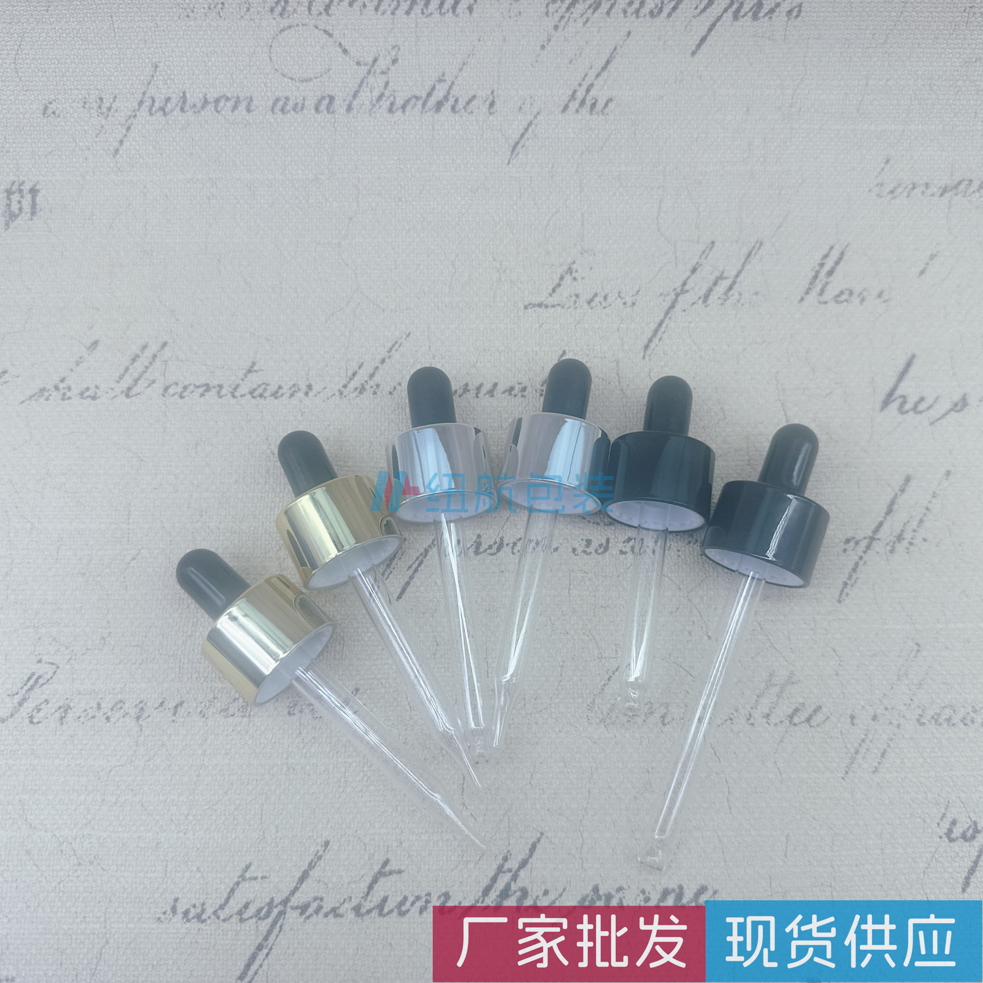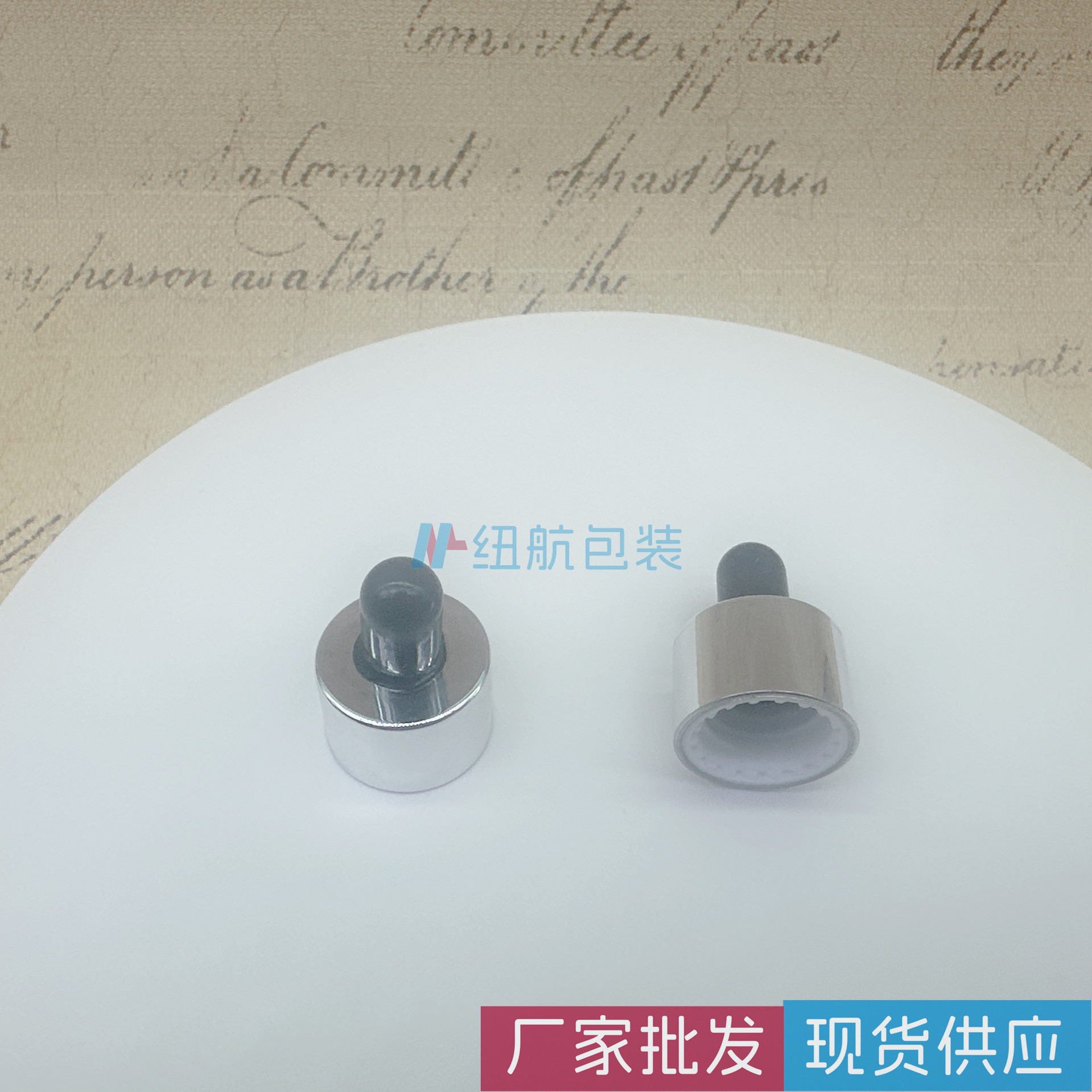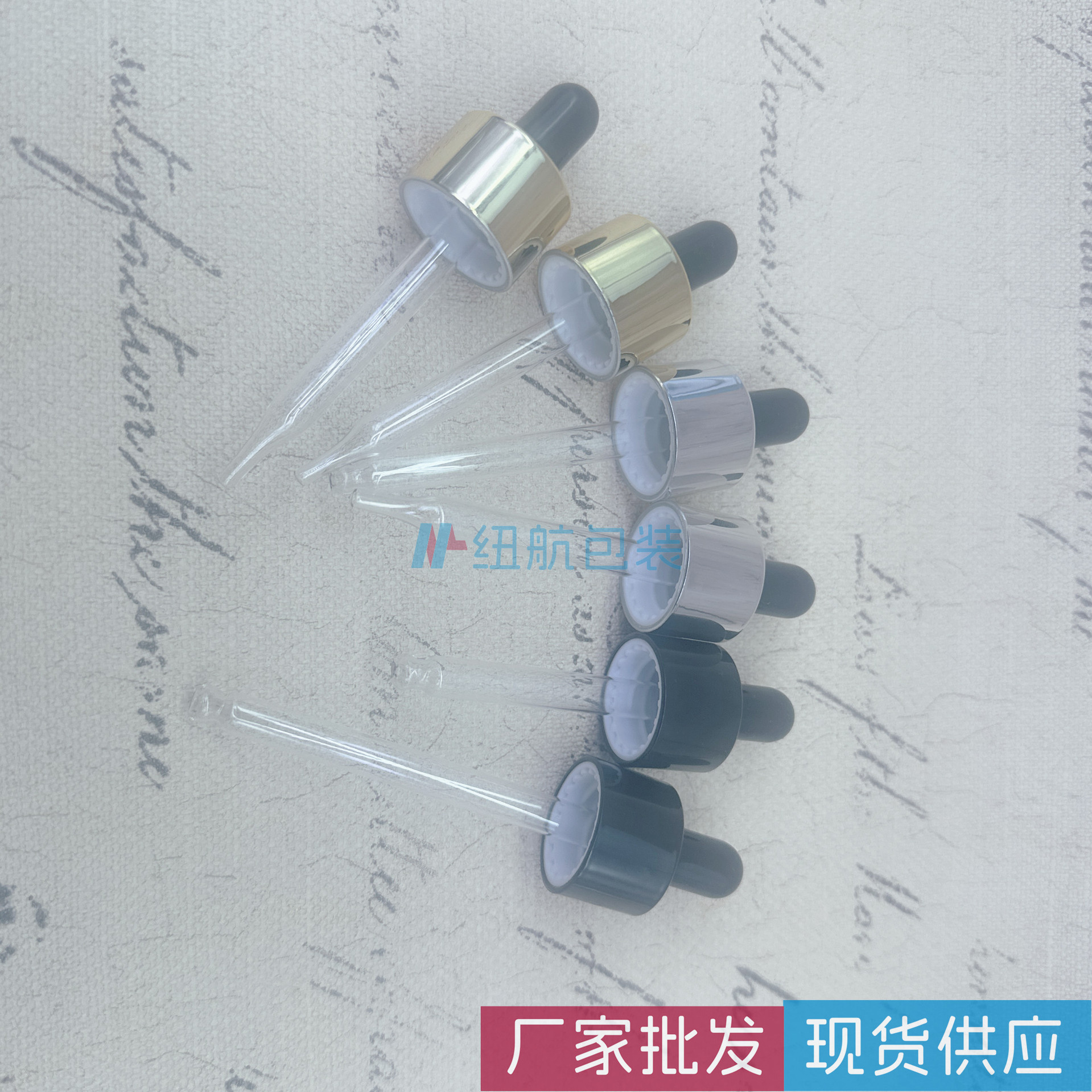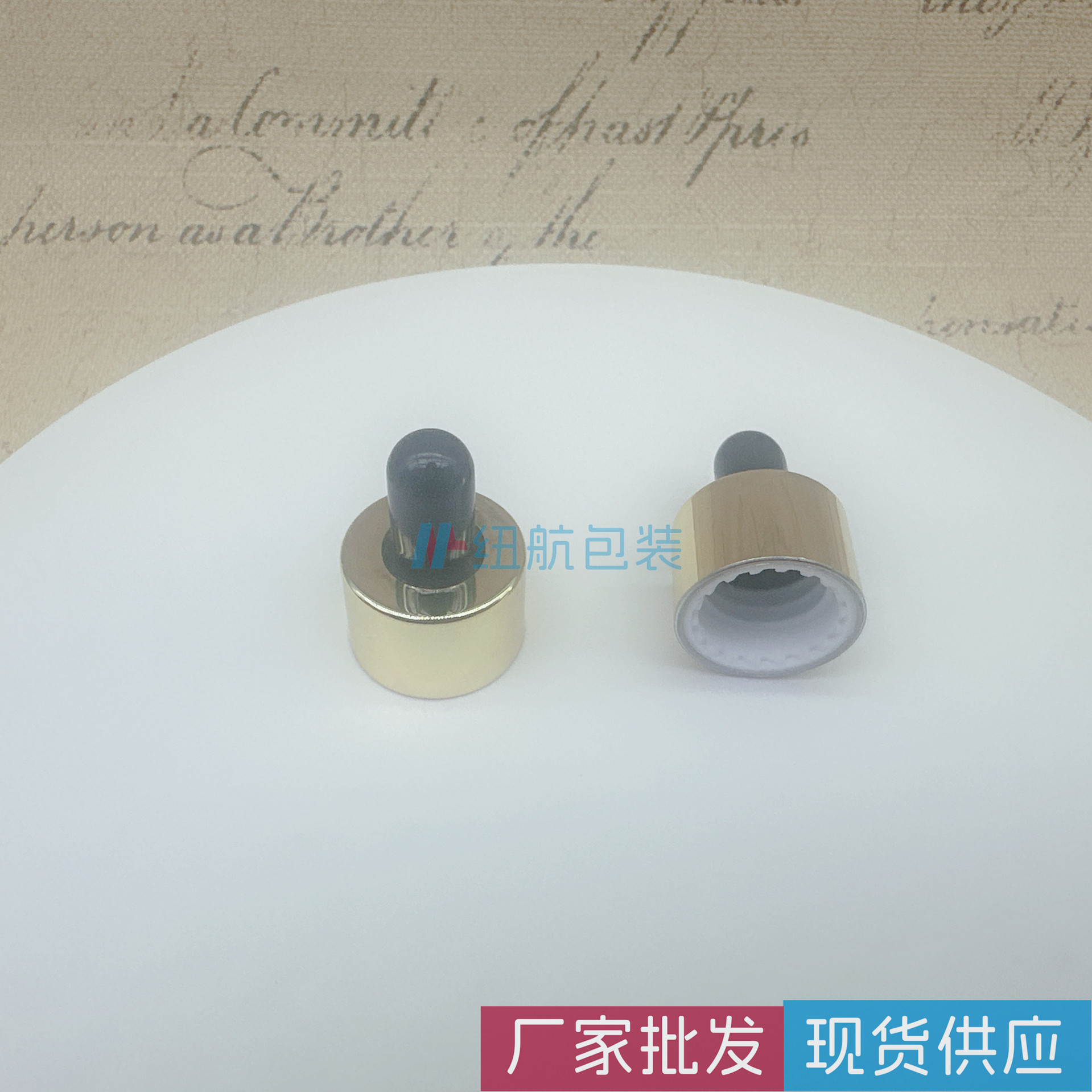 荐纽航现货供应18牙牙双层电镀盖黑色金色银色塑料UV盖胶头滴管盖