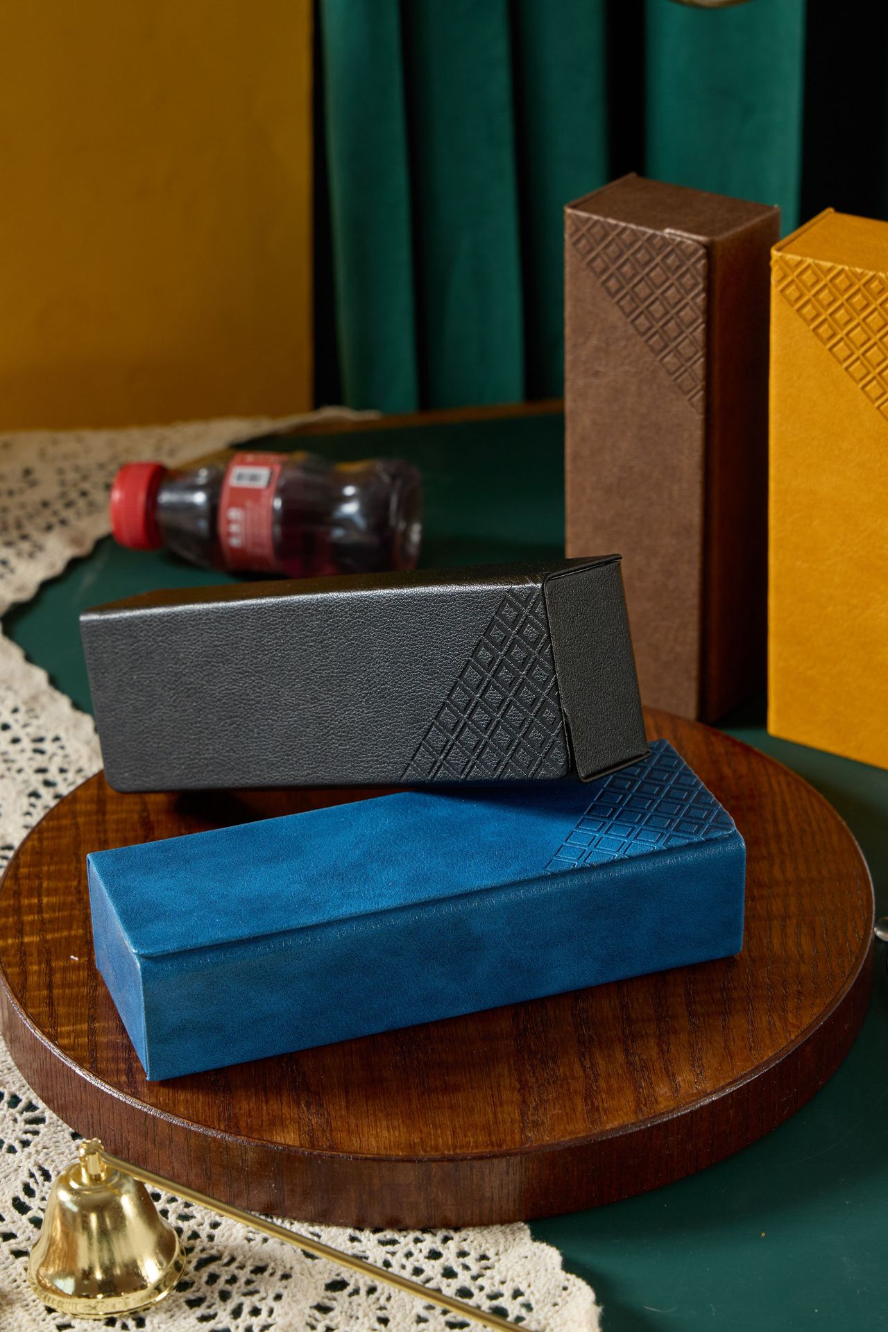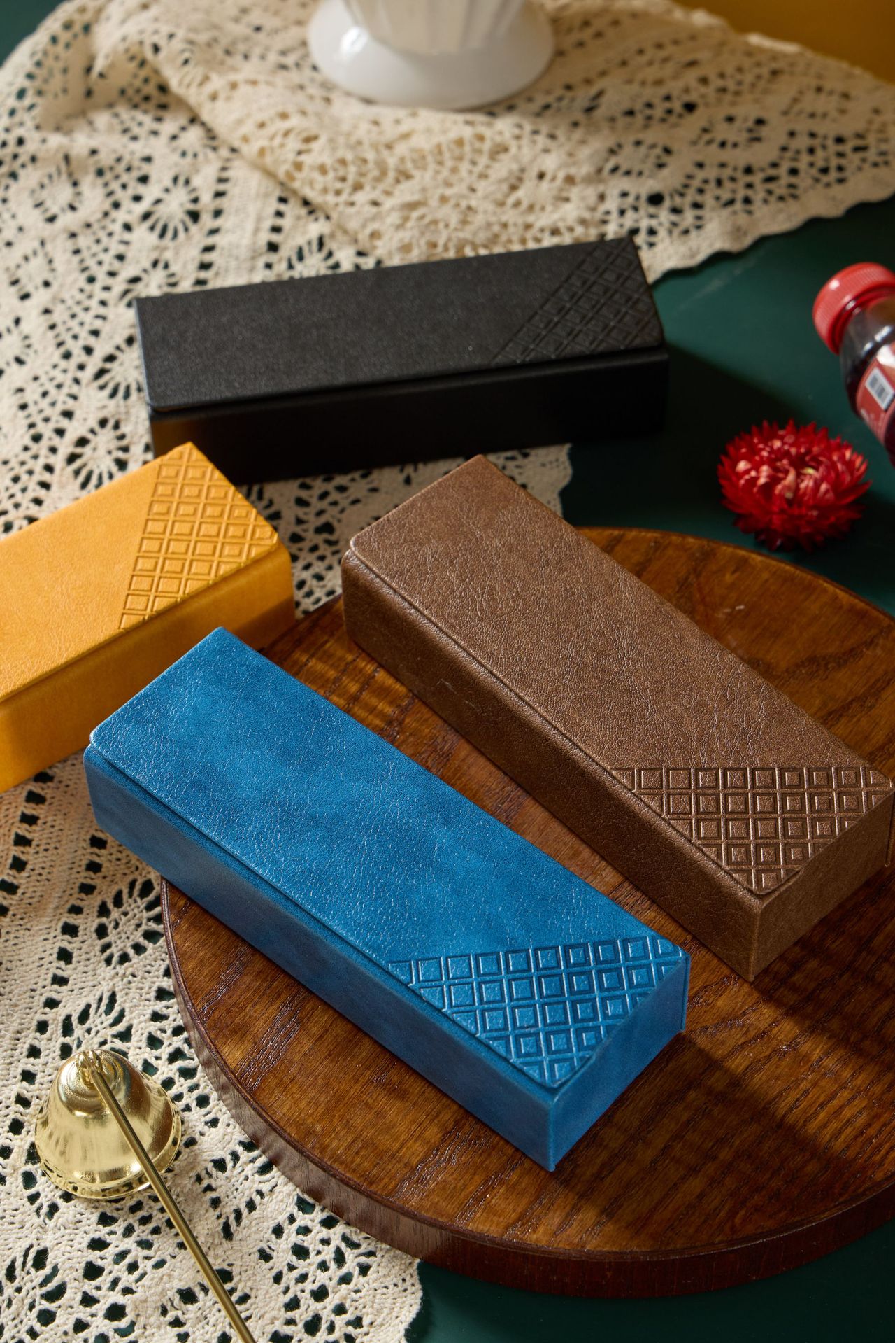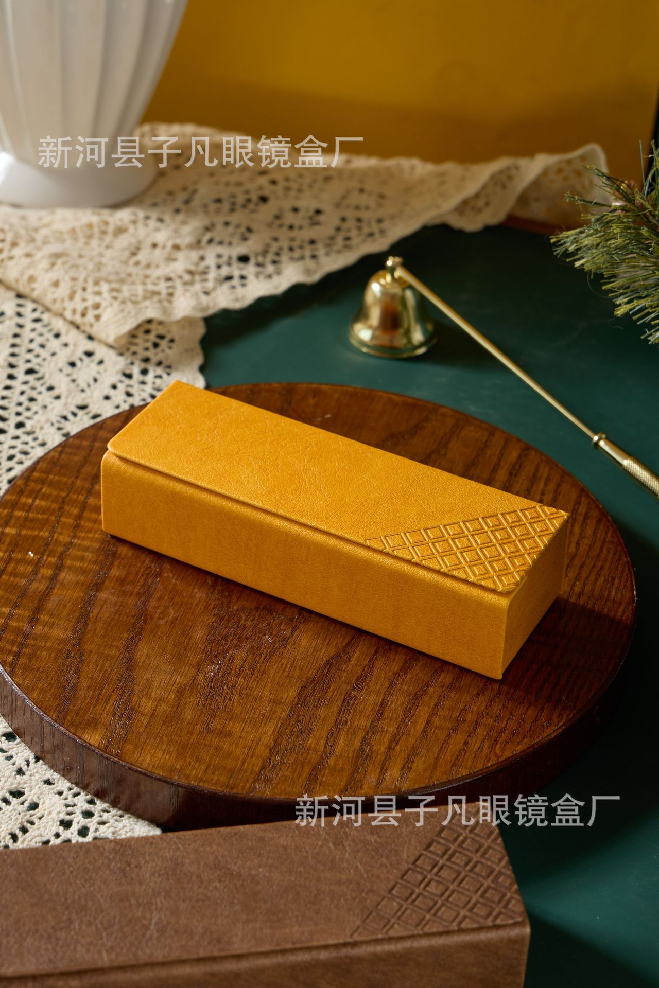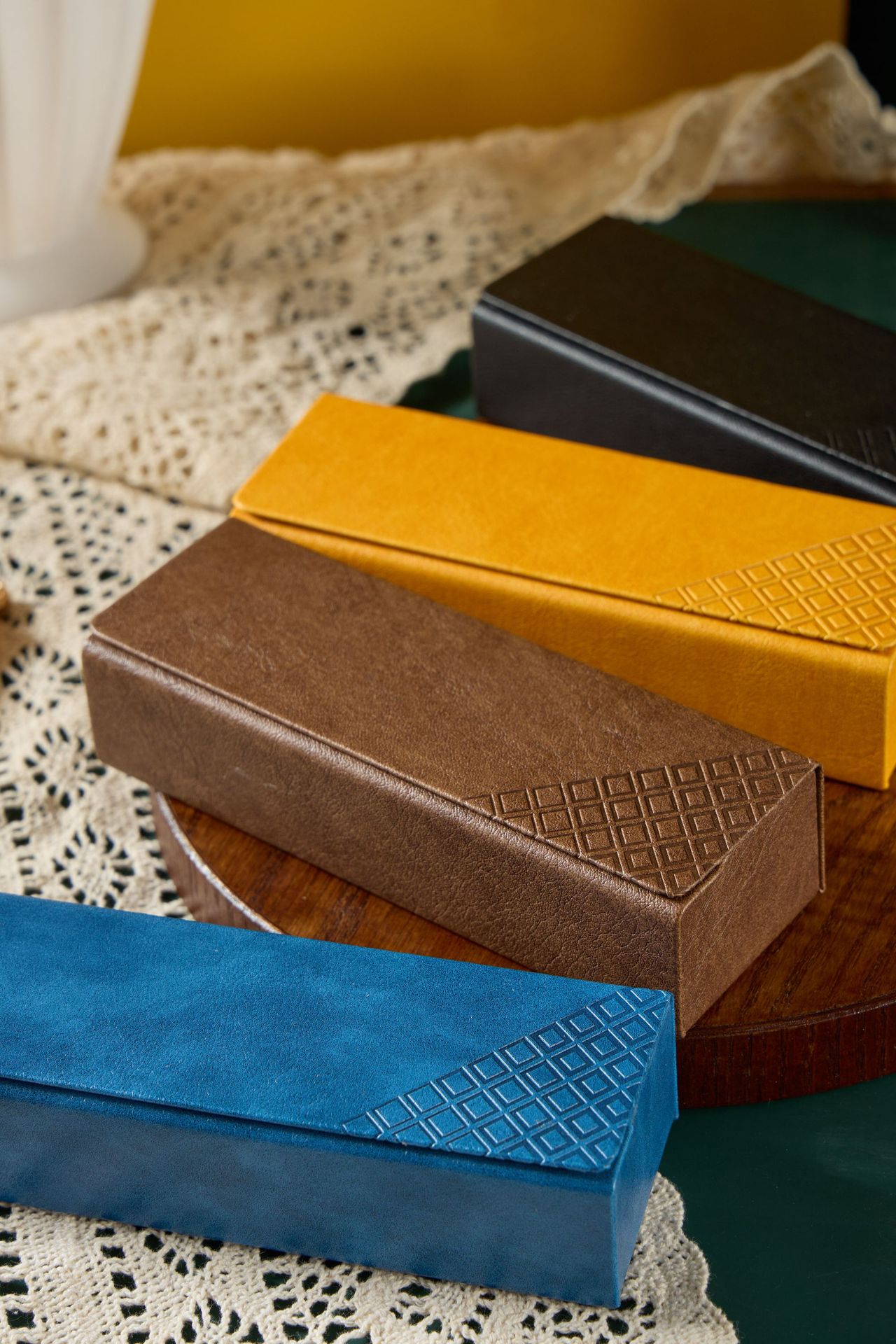 眼镜盒PU压变近视镜墨镜抗压光学镜盒简约商务手工学生方形眼镜盒