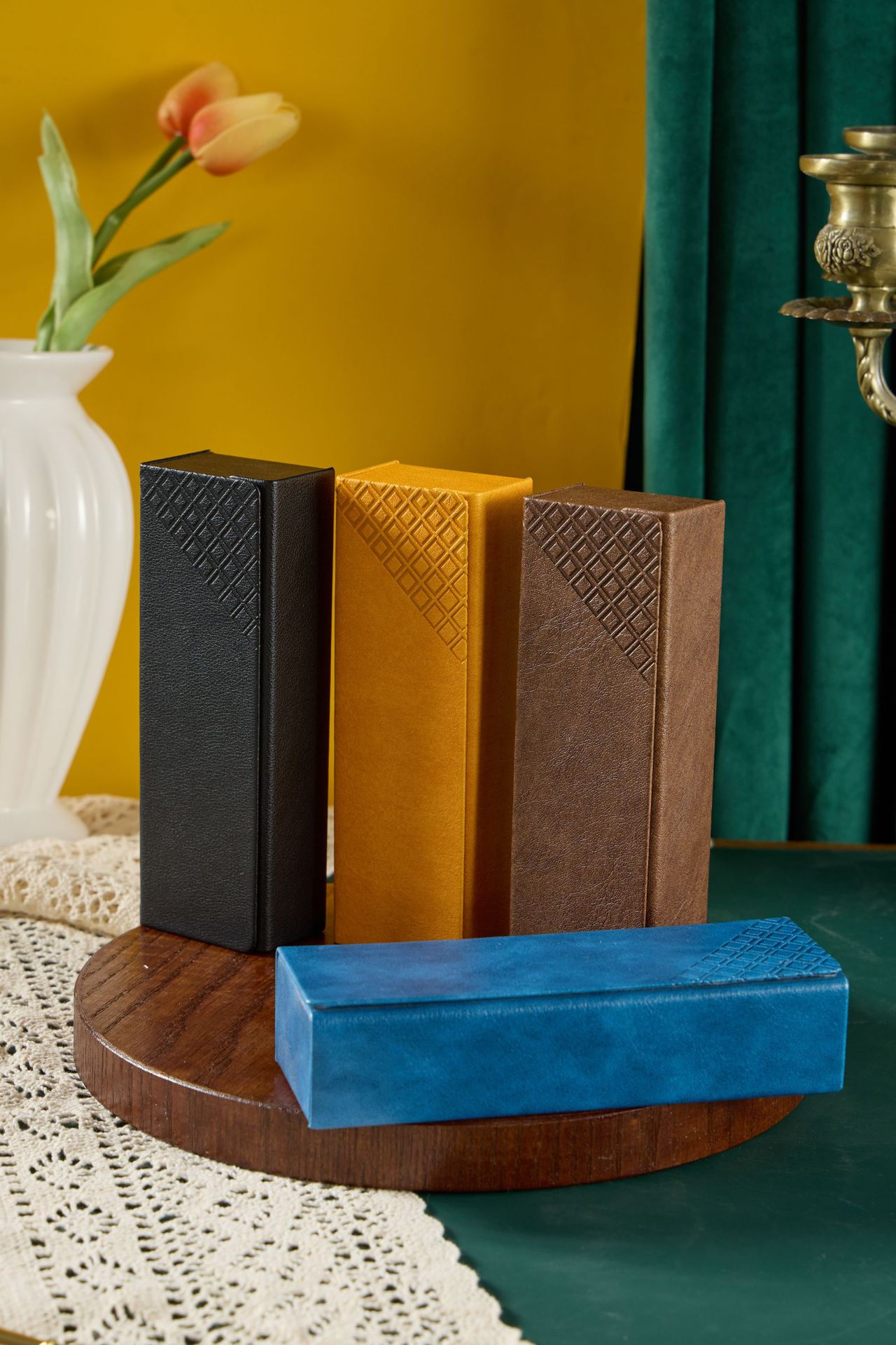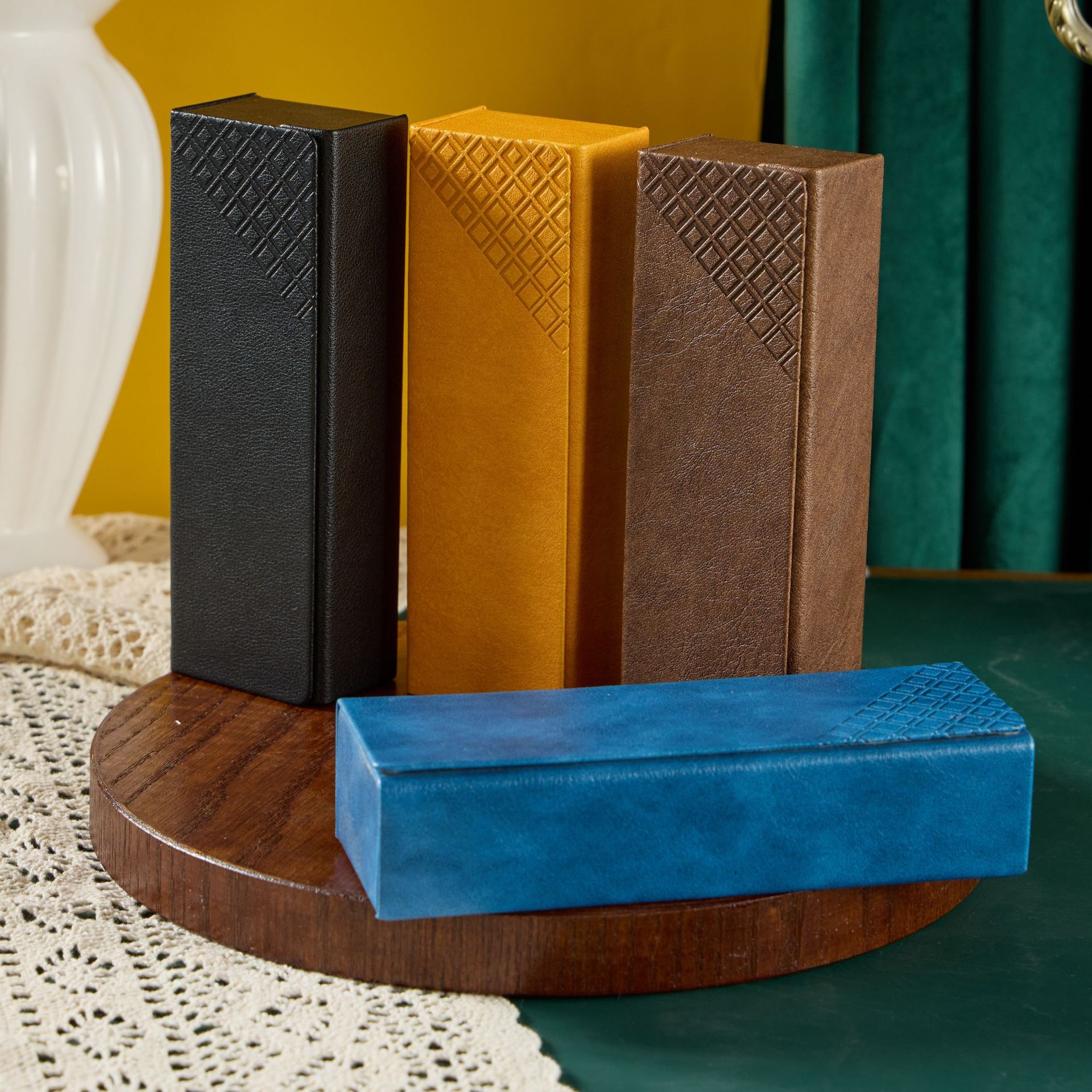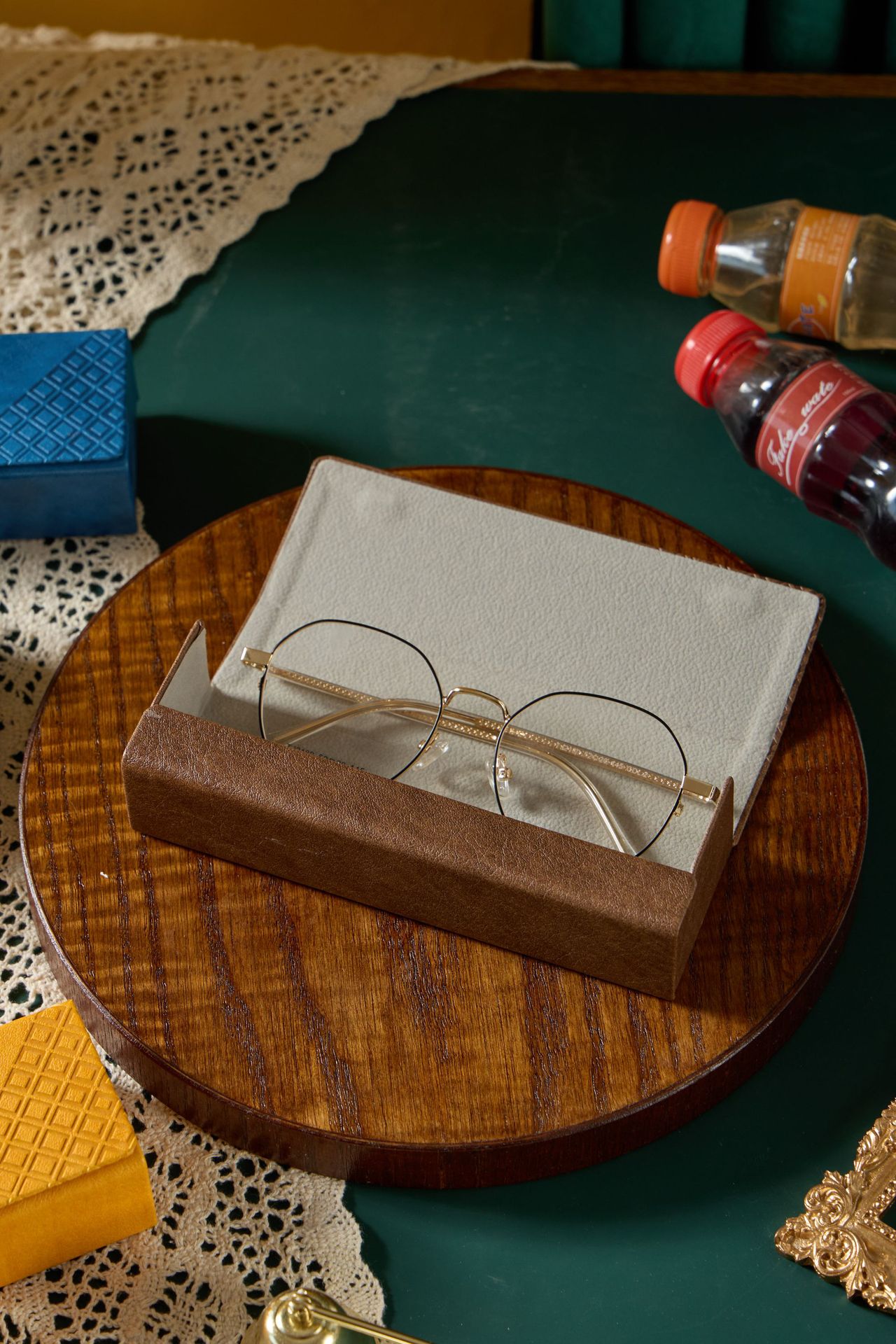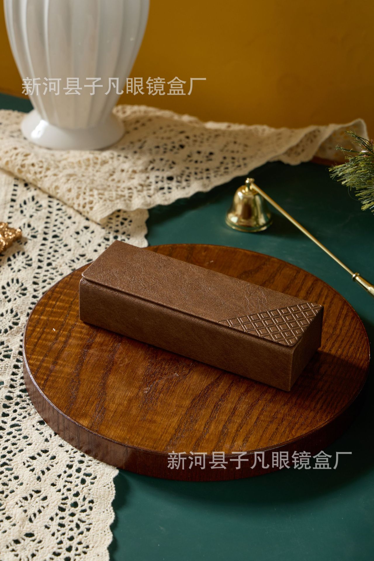 眼镜盒PU压变近视镜墨镜抗压光学镜盒简约商务手工学生方形眼镜盒