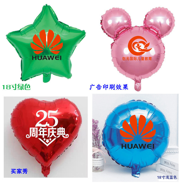 跨境18寸铝膜气球爱心五角星铝膜光板气球logo告白生日婚房布置,批发价,价格:0.35,厂家直销,跨境18寸铝膜气球爱心五角星铝膜光板气球logo告白生日婚房布置,免费拿样。