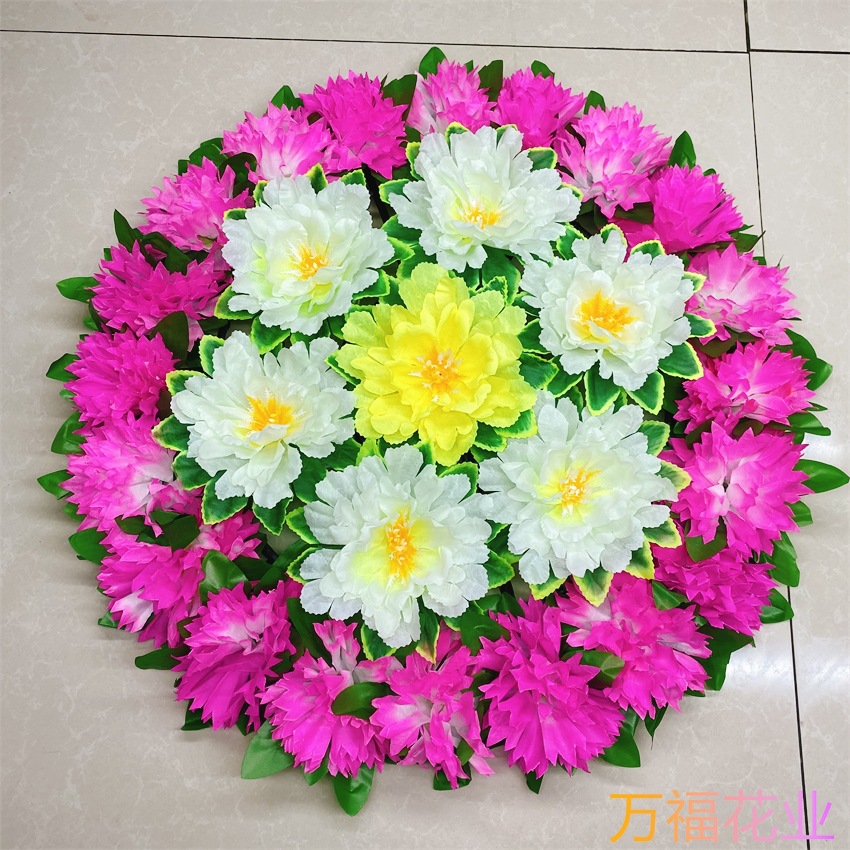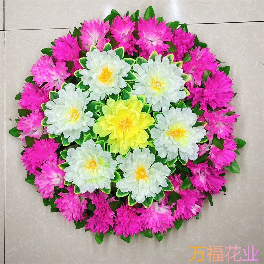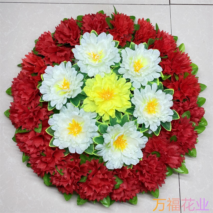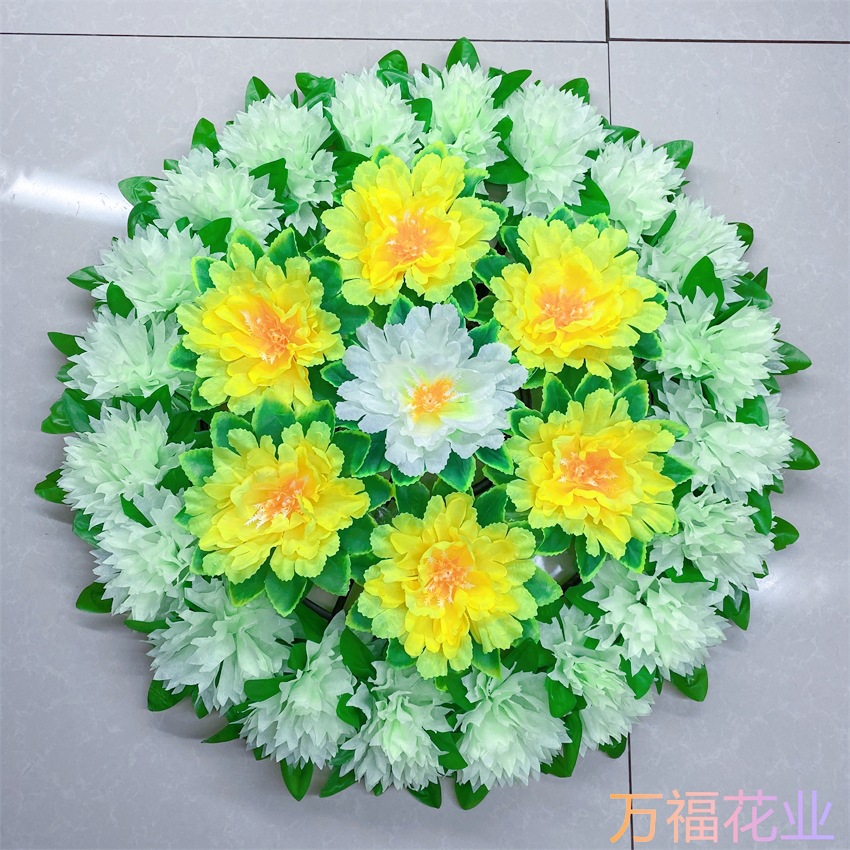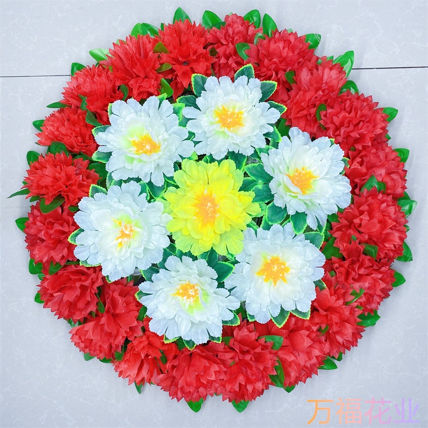 带叶康乃馨牡丹60清明小花圈 直径60厘米+ 款式多种 高中低档都有 欢迎订购 量大优惠