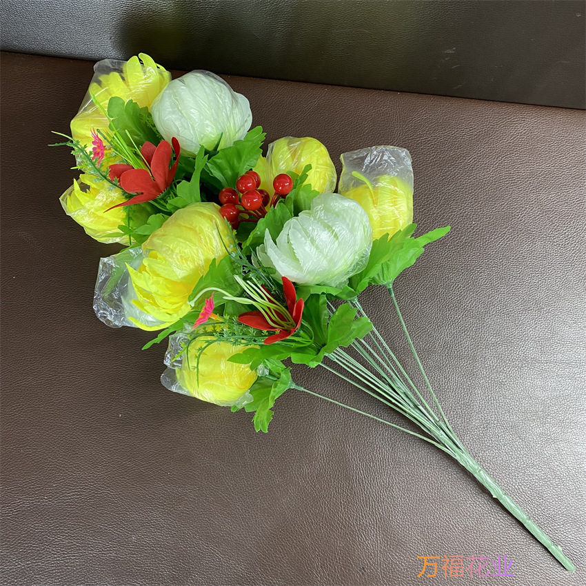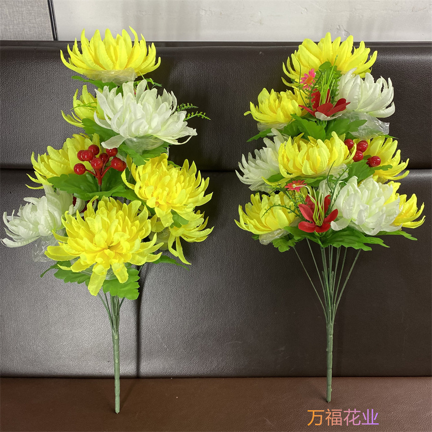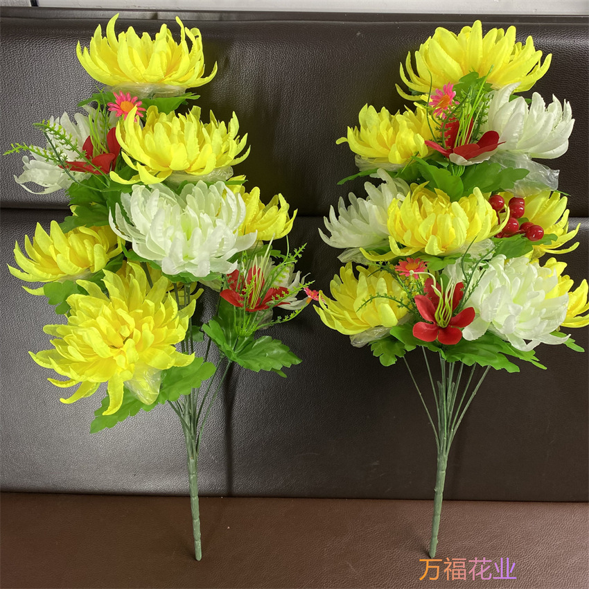 扇形花 扇形菊花 12头菊花 仿真花 清明花