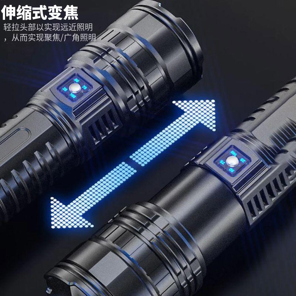 跨境超远射距爆亮强光手电筒手握式高功率电显伸缩变焦户外