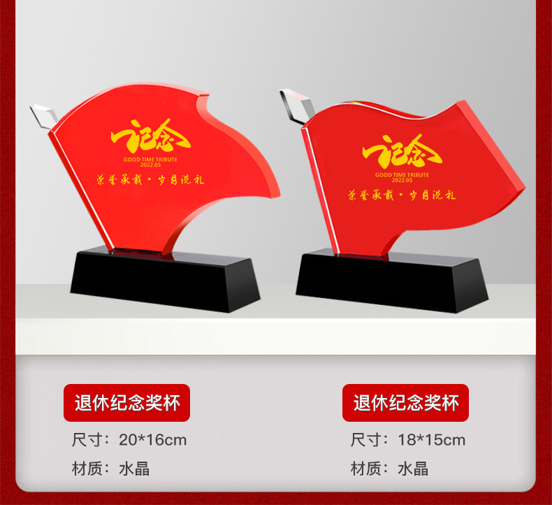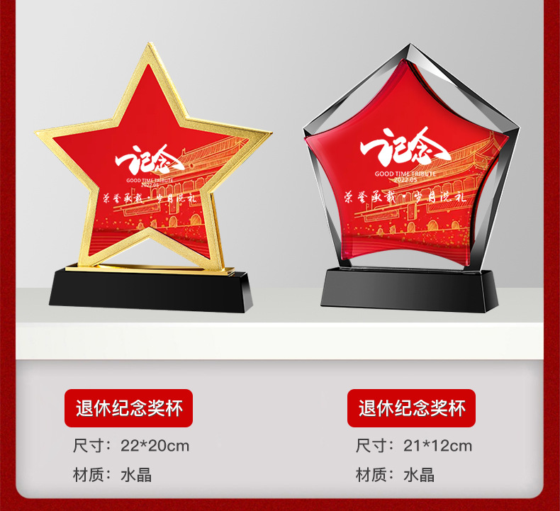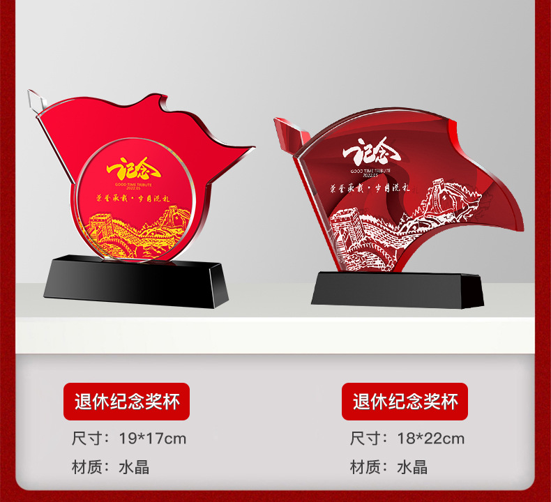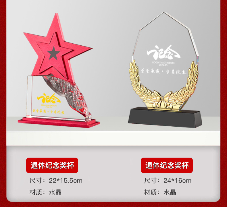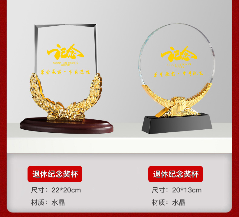 退役退伍奖杯摆件送战友军人老兵纪念品荣誉表彰建军八一礼品水晶