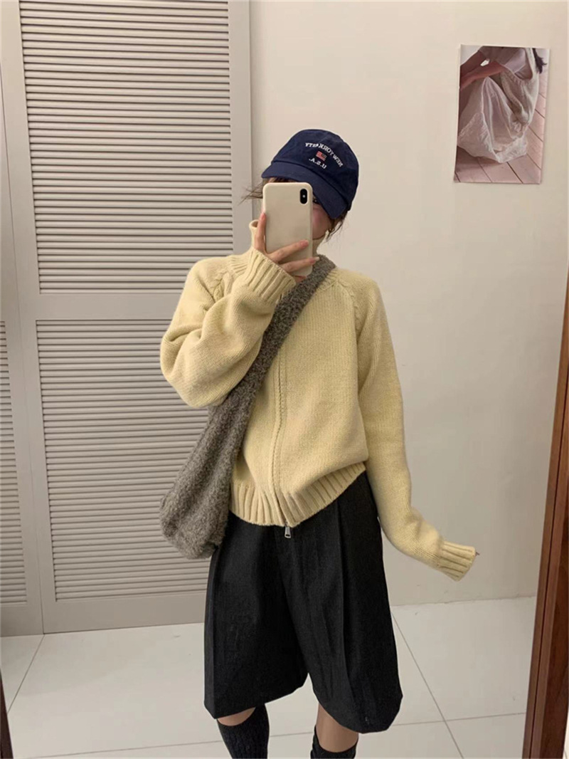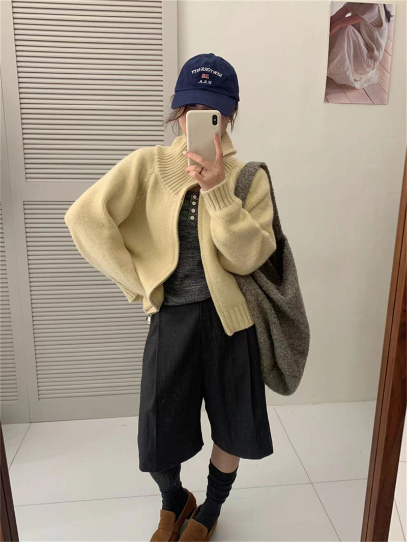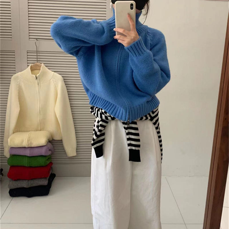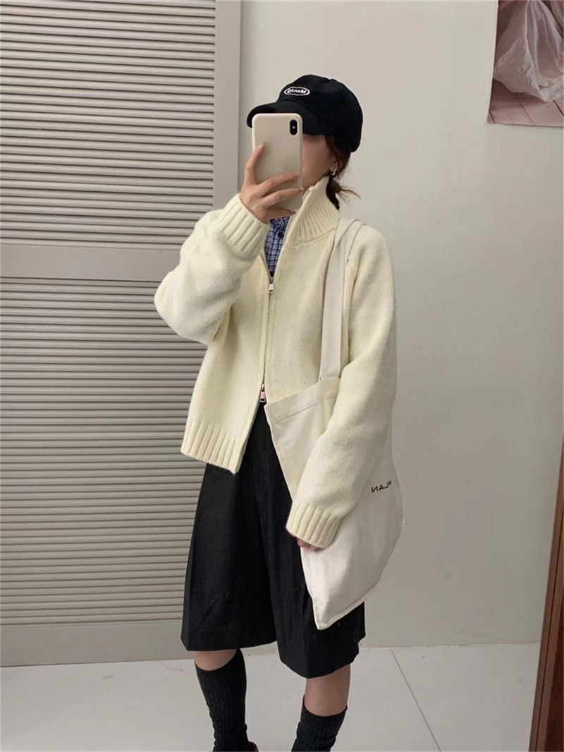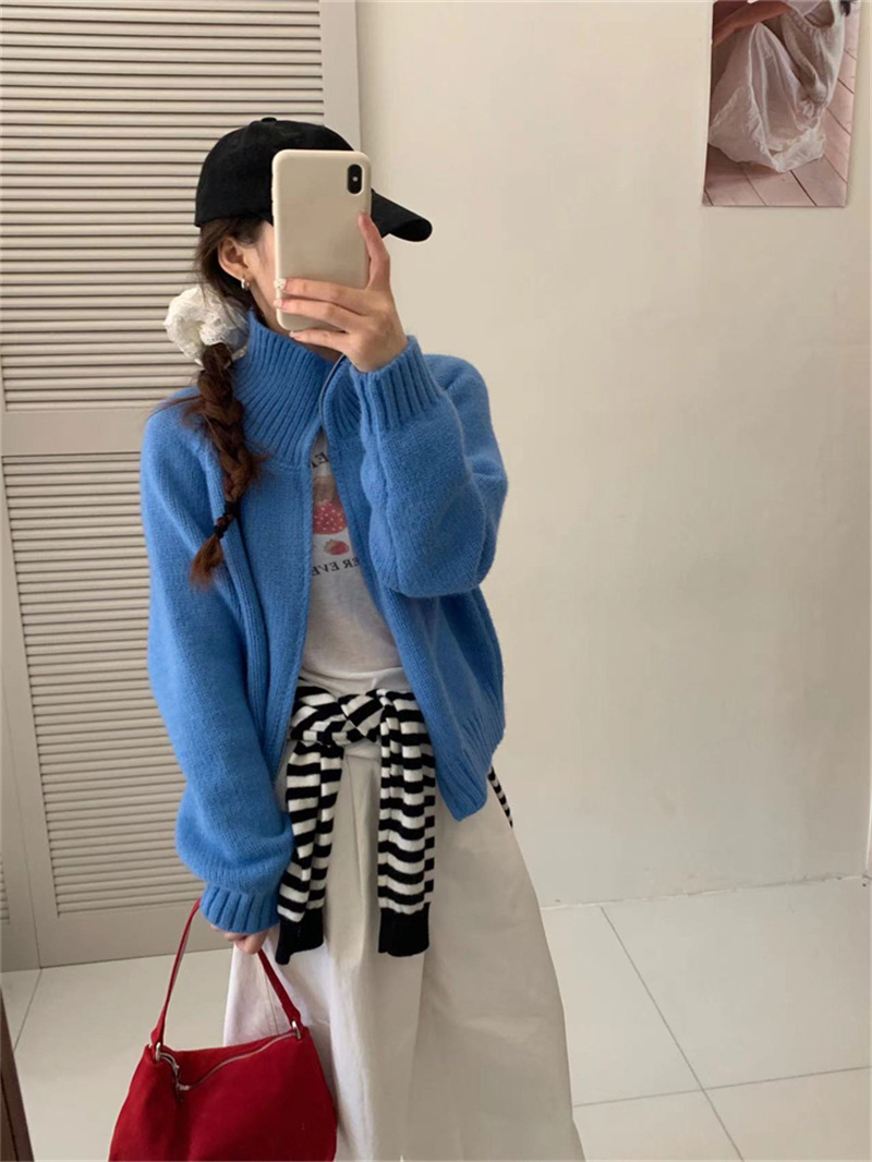 韩系慵懒风纯色双拉链毛衣外套女秋冬季新款宽松简约立领针织开衫,批发价,价格:58,厂家直销,韩系慵懒风纯色双拉链毛衣外套女秋冬季新款宽松简约立领针织开衫,免费拿样。