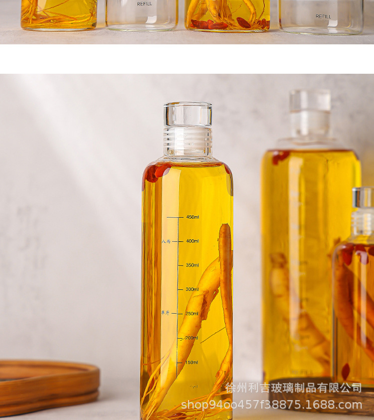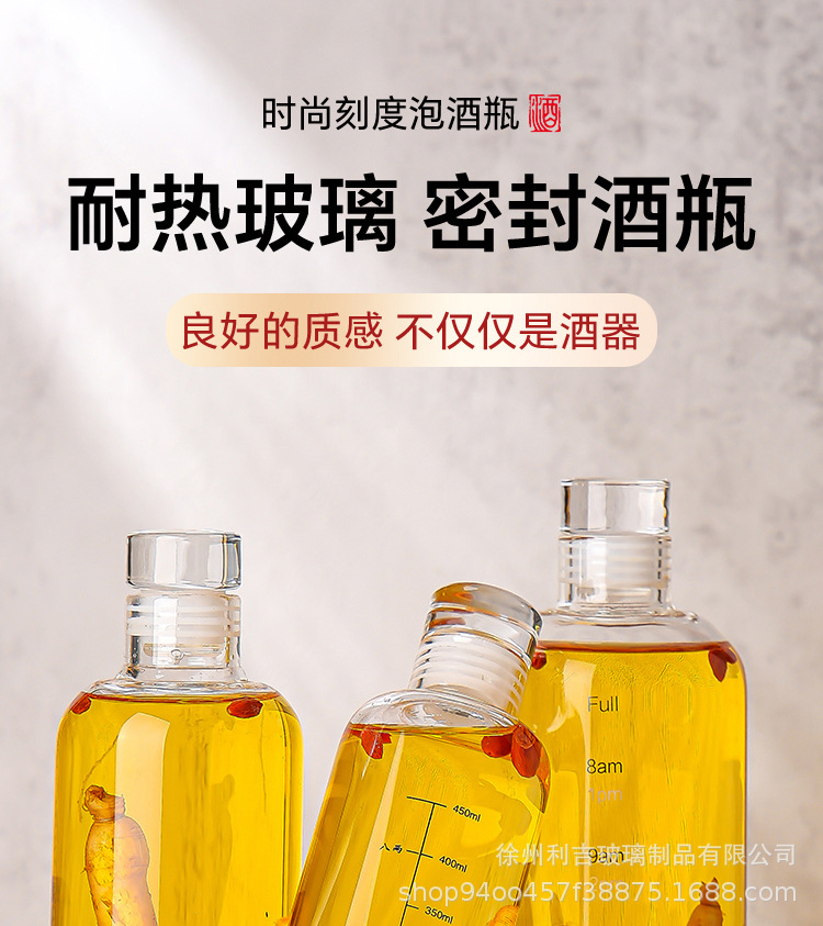 玻璃刻度酒瓶白酒储酒器玻璃瓶专用人参酒瓶高硼硅密封分装泡酒