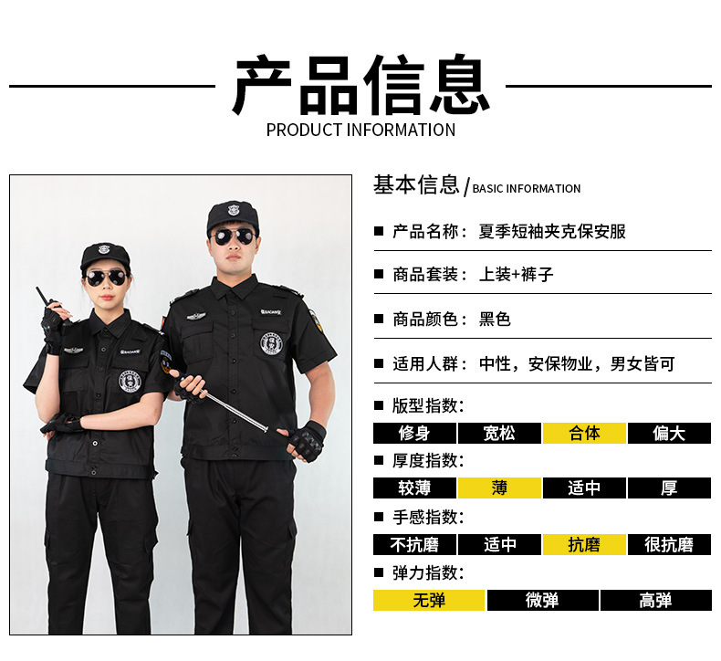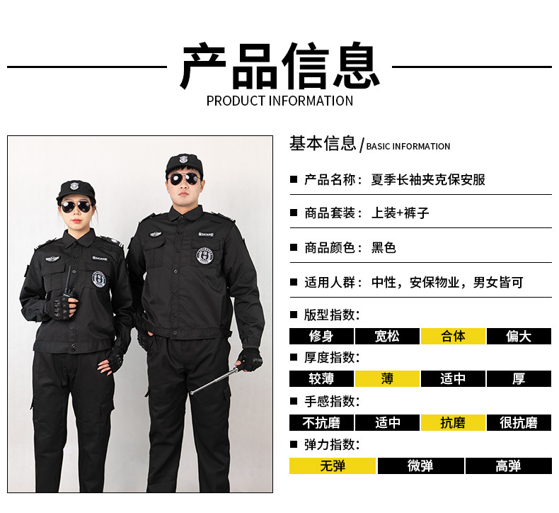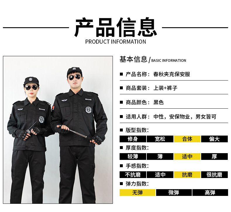 511款保安春秋冬长袖夹克套装短袖黑色安保物业执勤作训服工装