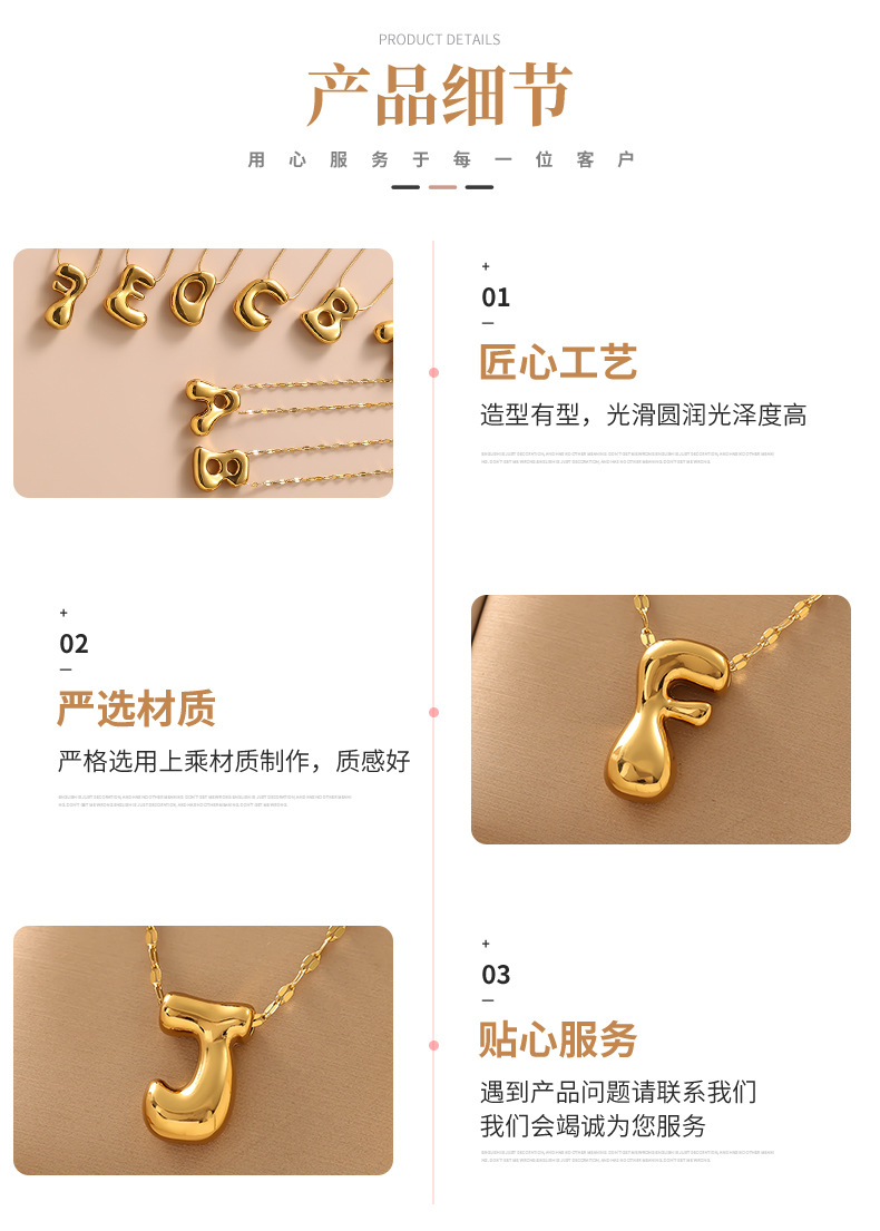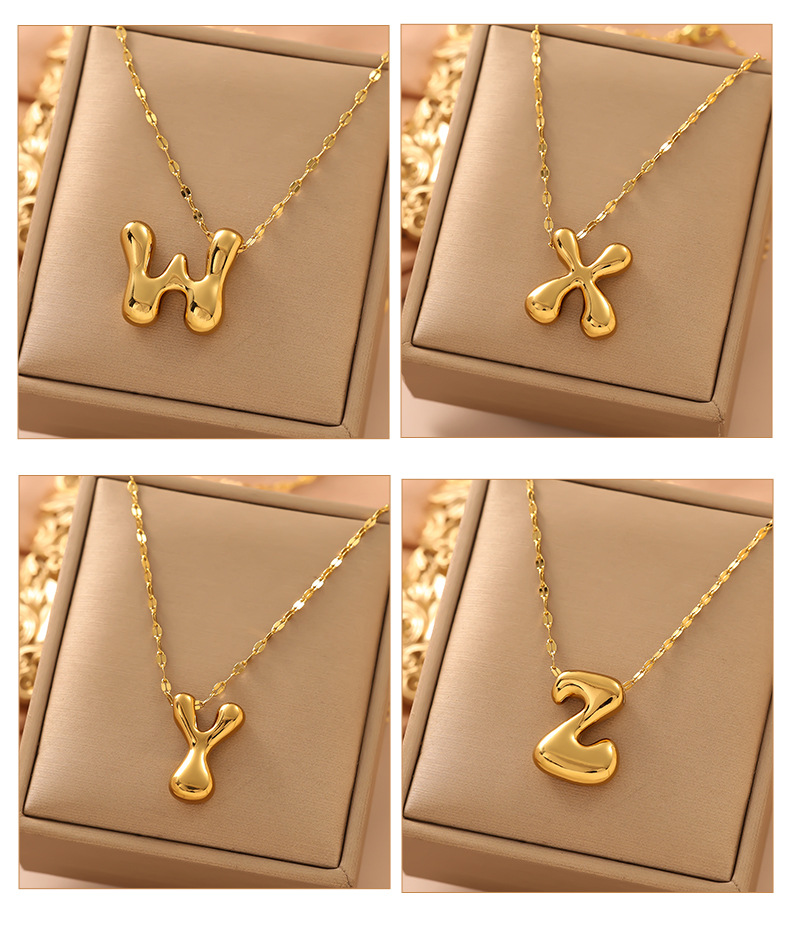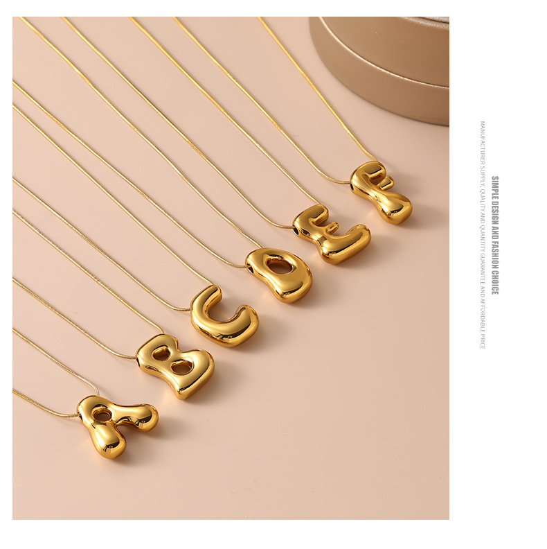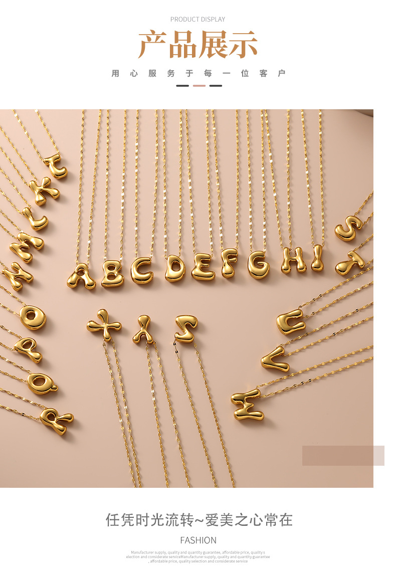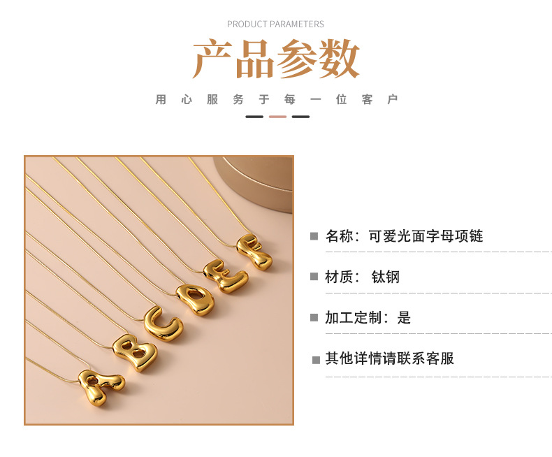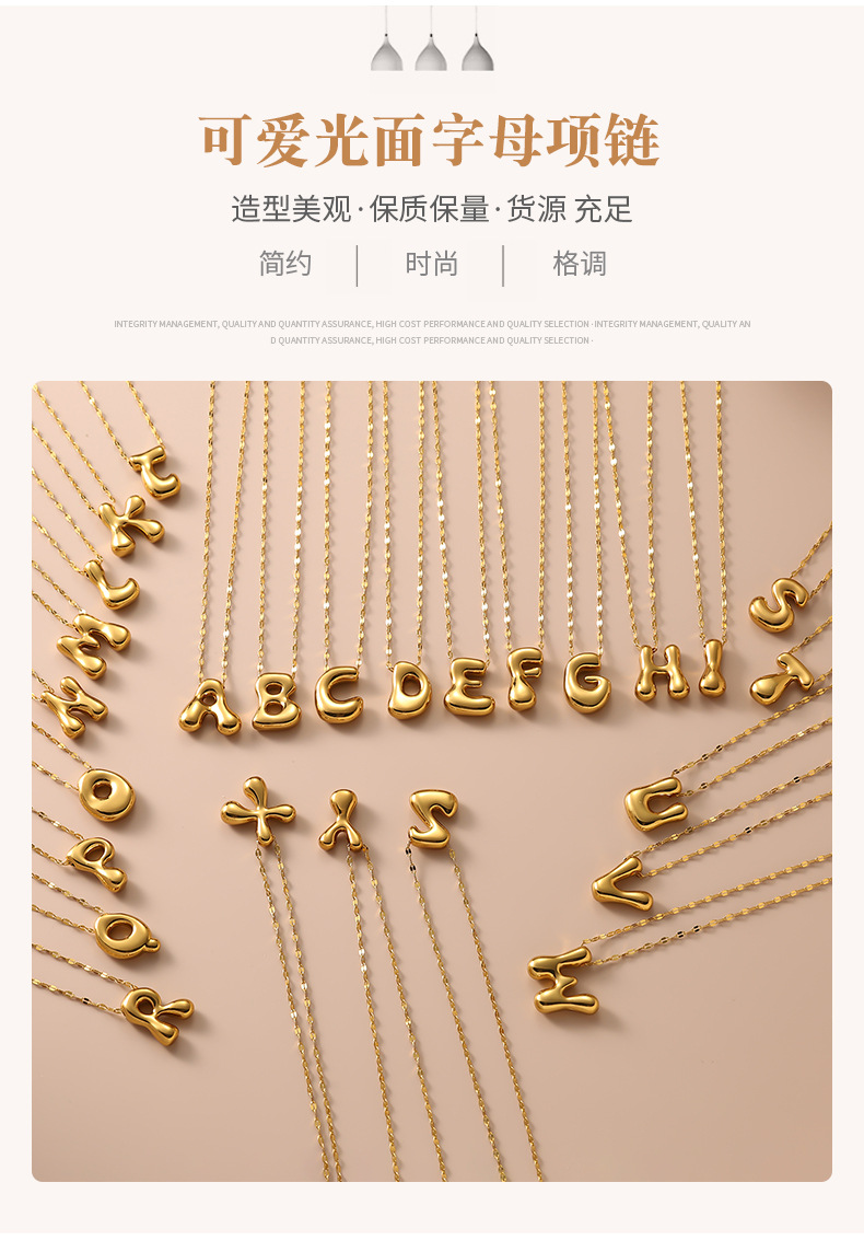 光面字母项链金色钛钢不掉色26个英文字母简约可爱时尚项链配饰