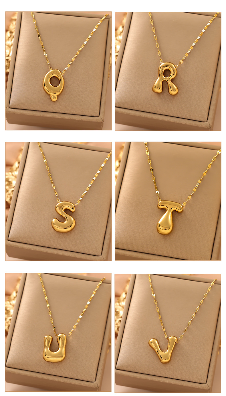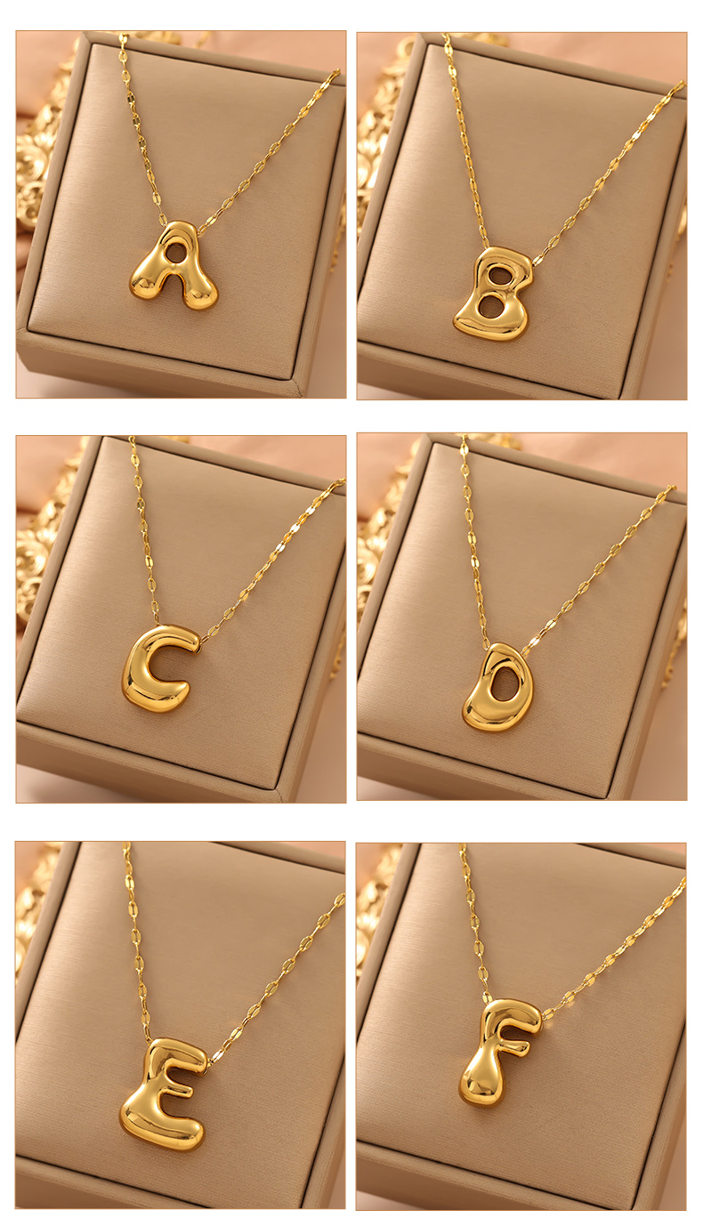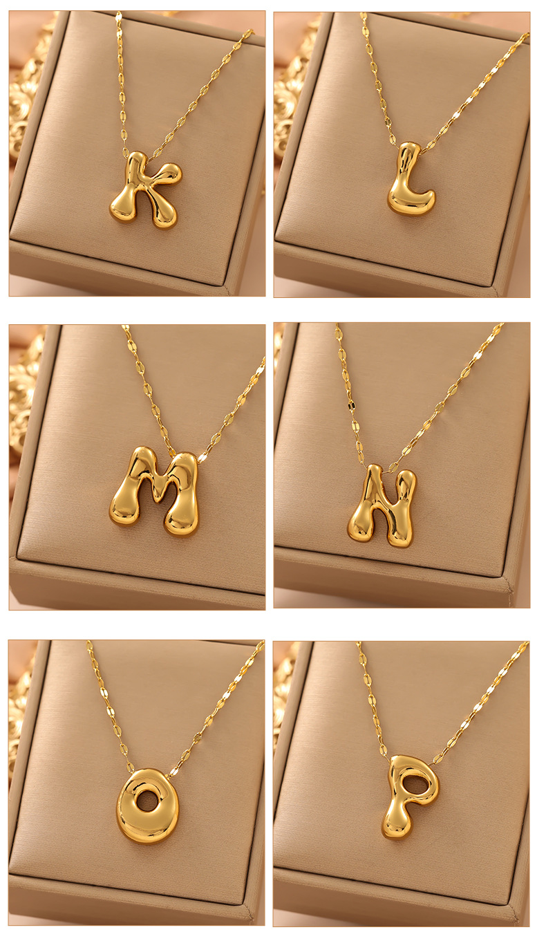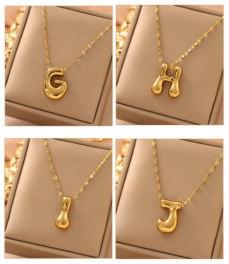 光面字母项链金色钛钢不掉色26个英文字母简约可爱时尚项链配饰