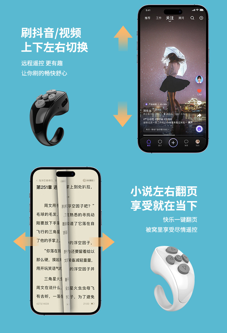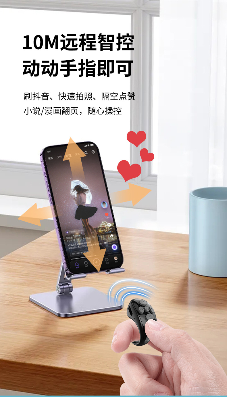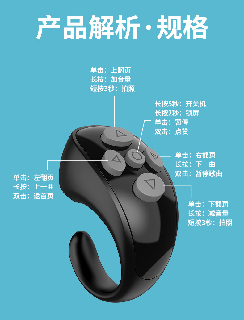 源头工厂直销25款蓝牙指环遥控器刷抖音快手追剧远程拍照视频录制