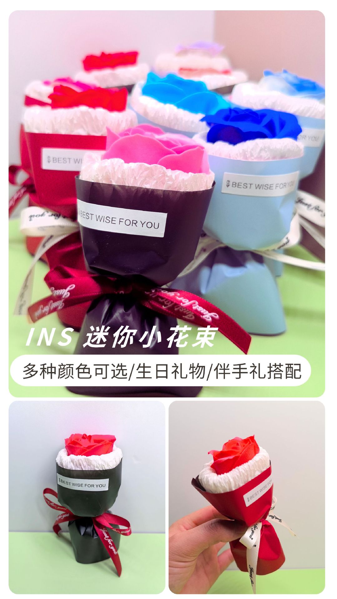 ins风迷你香皂玫瑰花女友送礼口袋小花束 母亲节伴手礼盒搭配装饰
