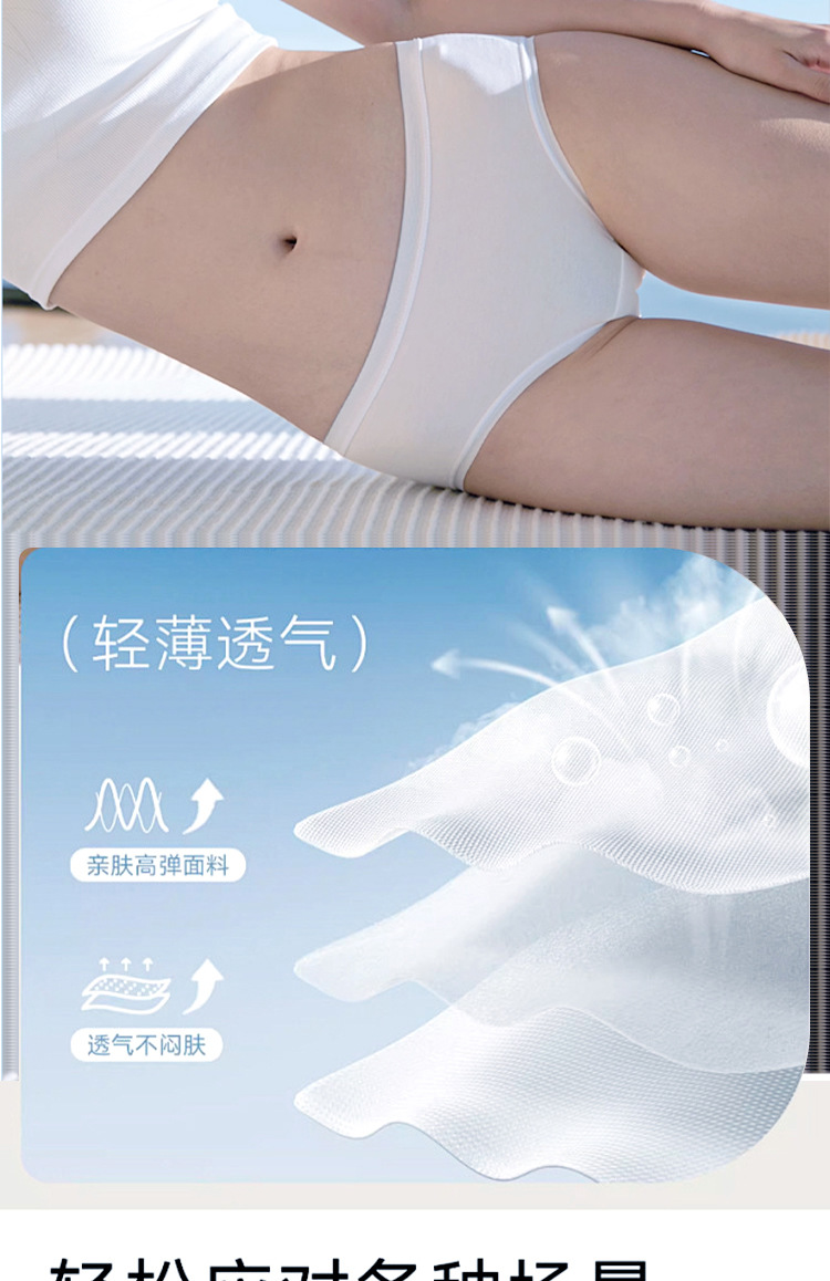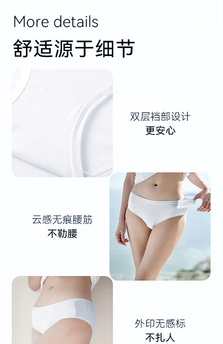 拾光纺袋装女士普梳棉白色三角裤一次性内裤女独立包装5条