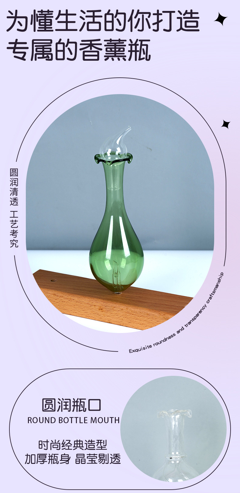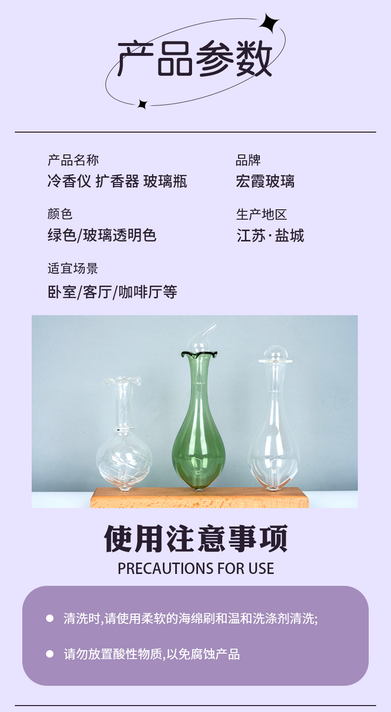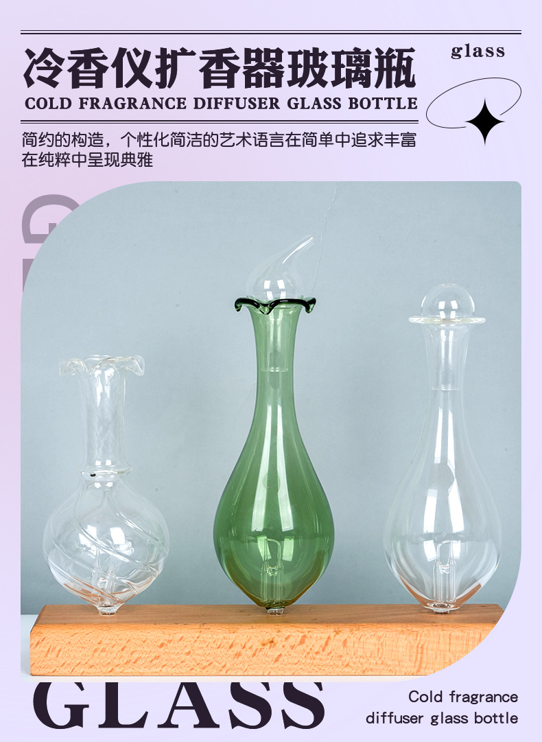 多种造型玻璃扩香瓶厂家来图可定办公室书房卧室精油扩香仪玻璃瓶