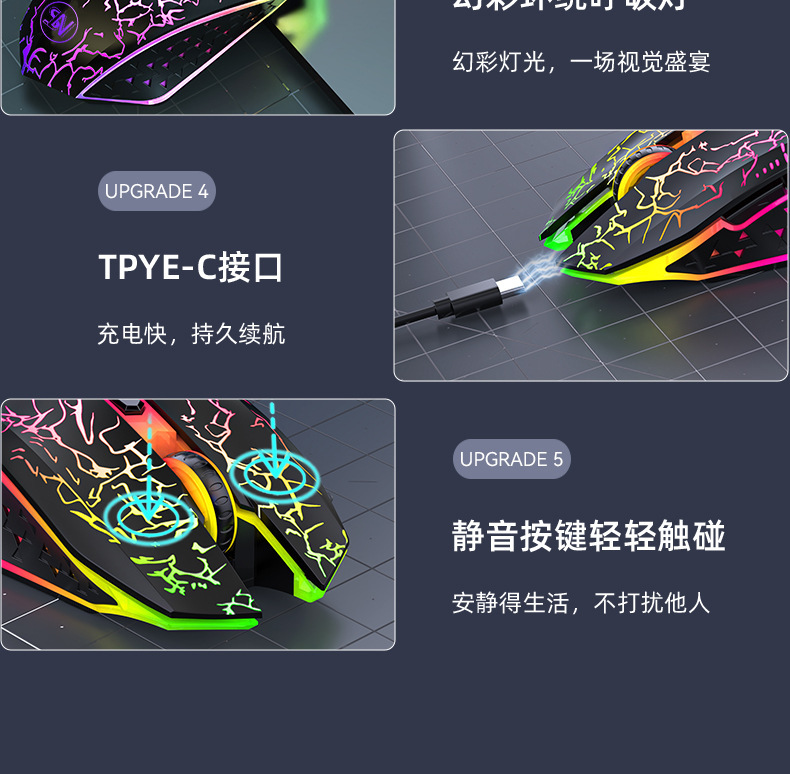 森朗尼M8充电静音蓝牙双模无线鼠标T-pc充电七彩裂纹发光游戏鼠标,批发价,价格:10.5,厂家直销,森朗尼M8充电静音蓝牙双模无线鼠标T-pc充电七彩裂纹发光游戏鼠标,免费拿样。