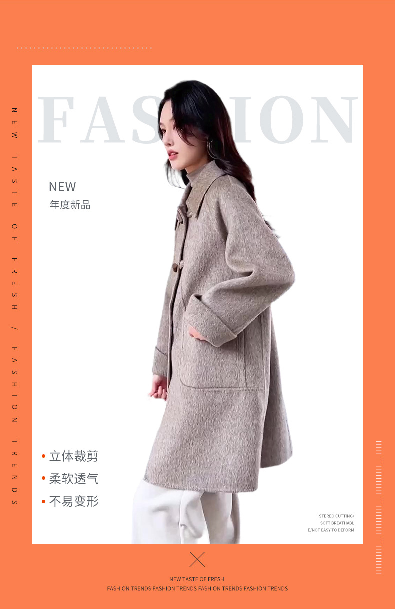 加工定制双面羊绒大衣女中长款韩版宽松牛角扣毛呢外套厂家大翻领,批发价,价格:335,厂家直销,加工定制双面羊绒大衣女中长款韩版宽松牛角扣毛呢外套厂家大翻领,免费拿样。