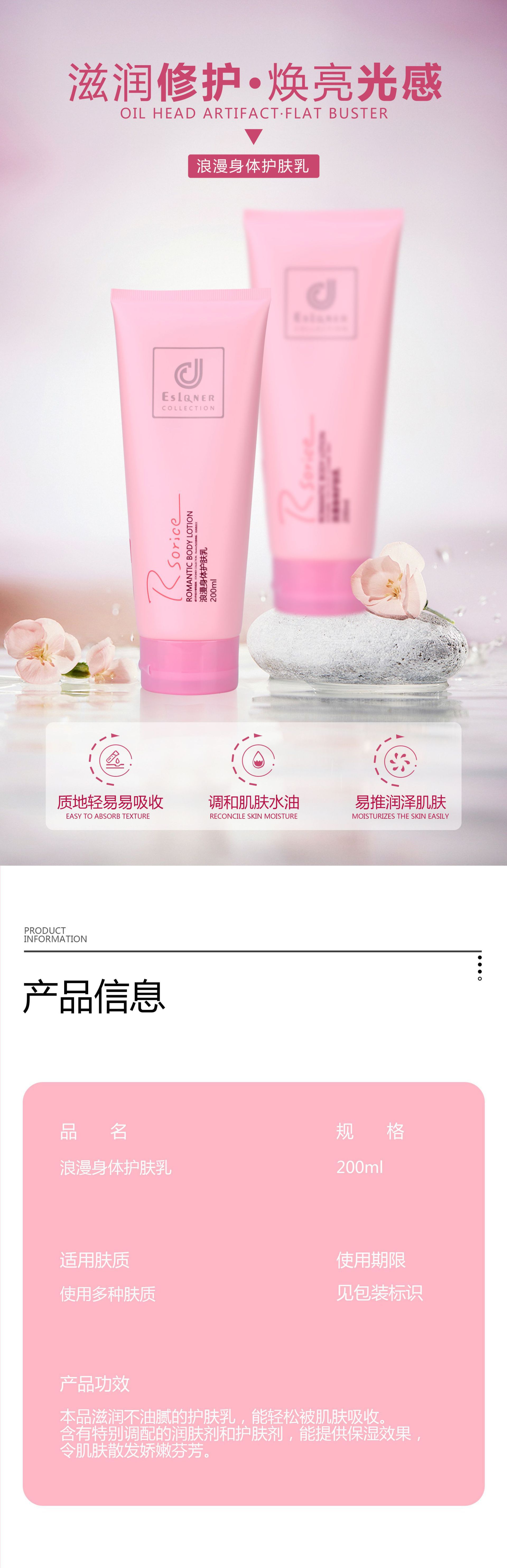 科士威浪漫身体乳200ml玫瑰粉色香水润肤乳留香保湿滋润柔滑香体