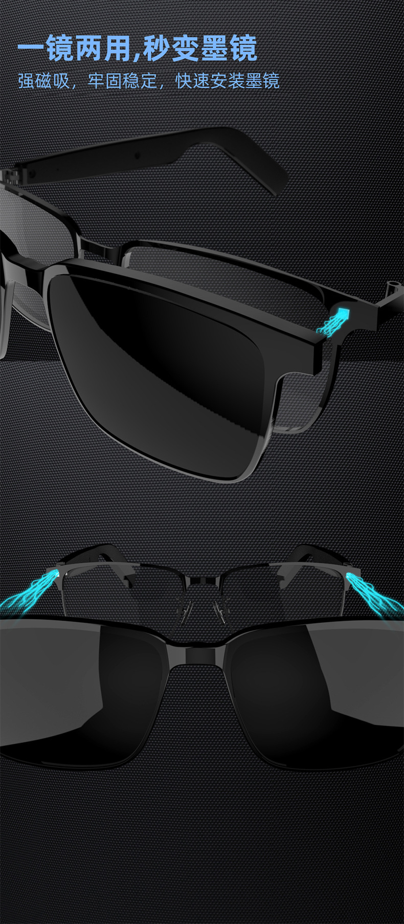 跨境墨镜音乐跨境蓝牙耳机多功能听歌打电话智能SG20PRO蓝牙眼镜