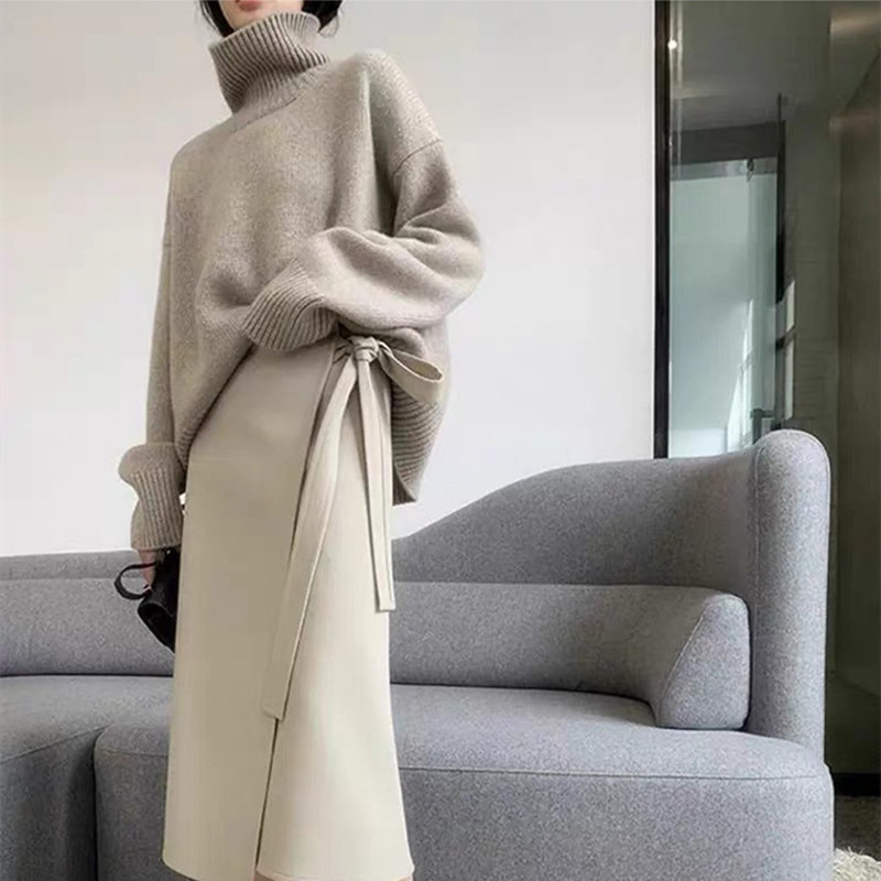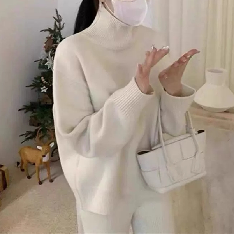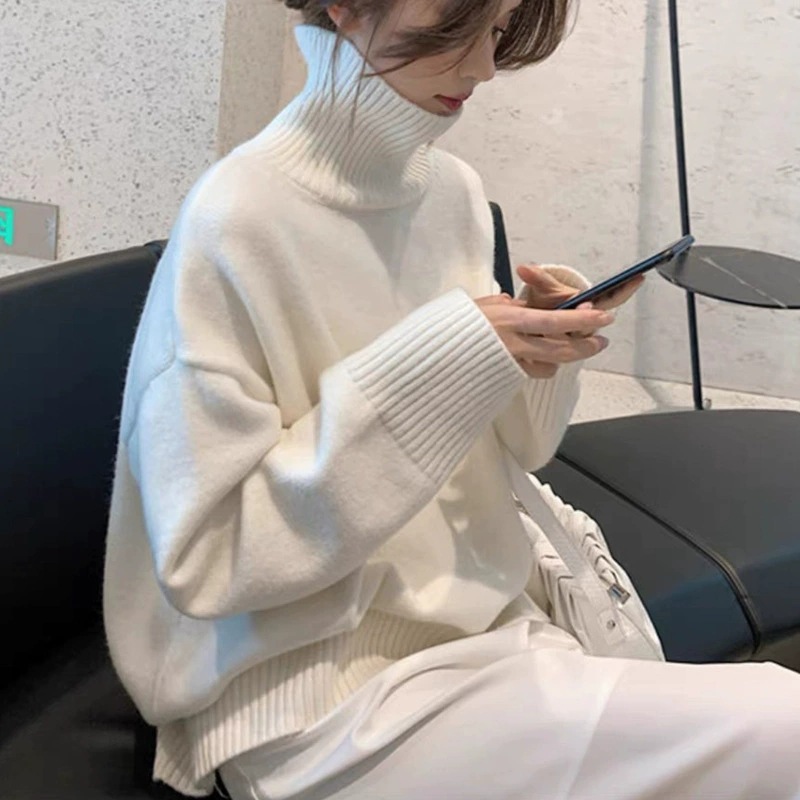 欧货秋冬新款时尚高领针织衫上衣女韩系宽松慵懒风套头打底衫毛衣