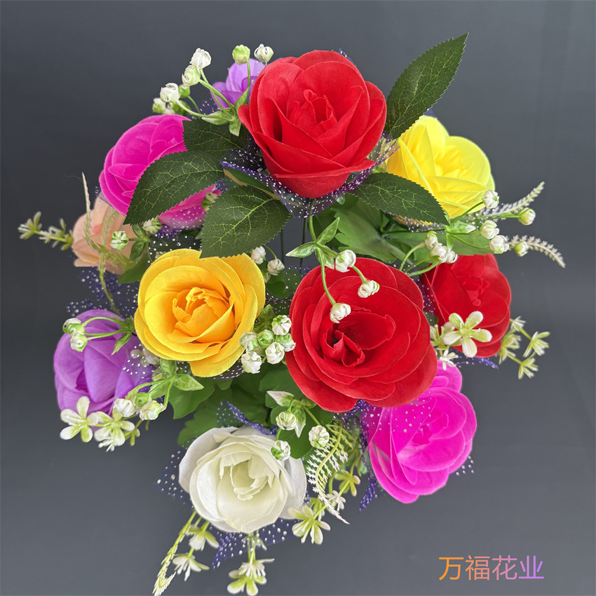 模拟永生花 仿真花 玫瑰假花 12头玫瑰花 供花