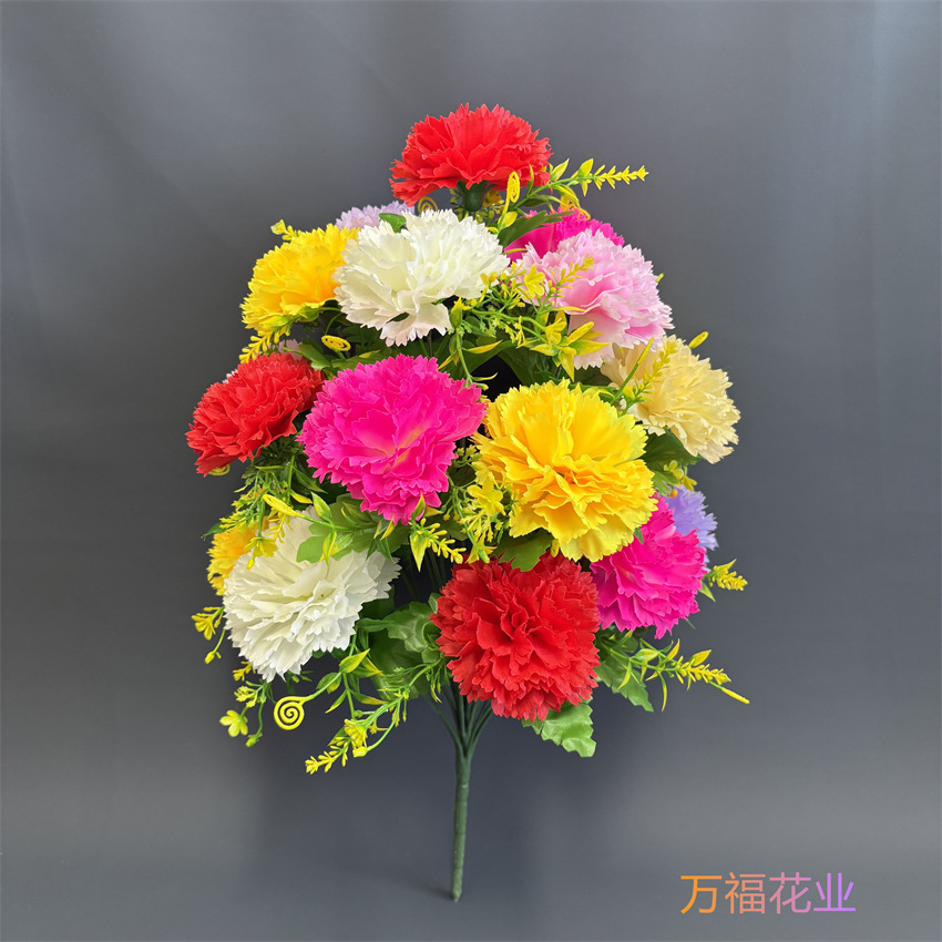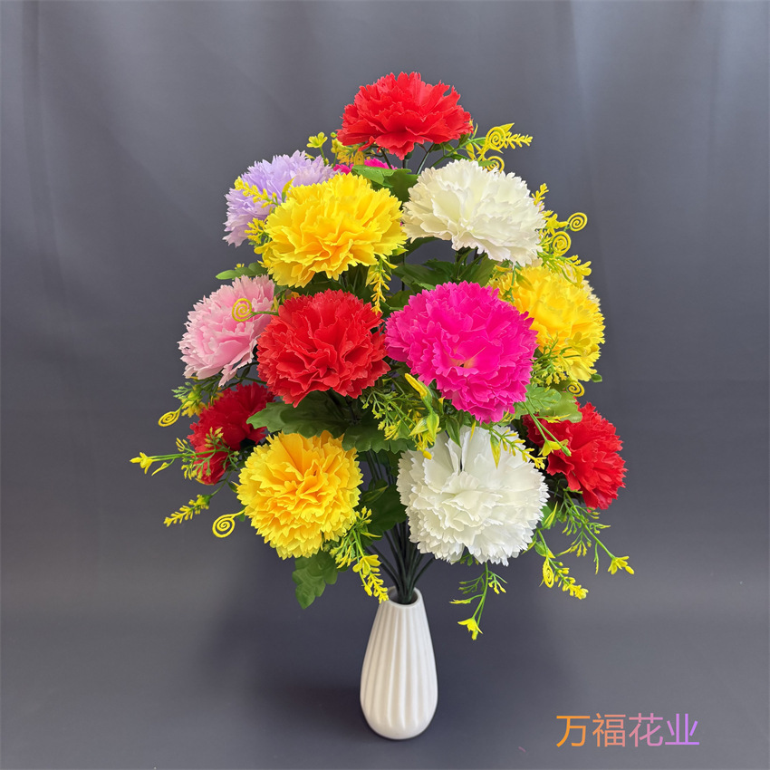 清明花18头康乃馨仿真花丁香花假花永生花绢布花清明花供摆放花束