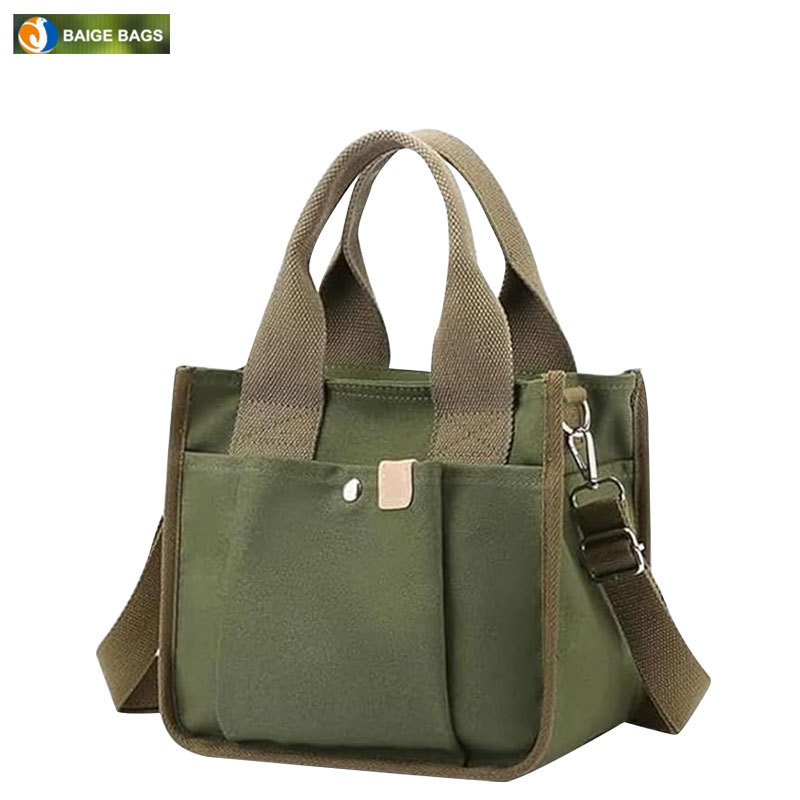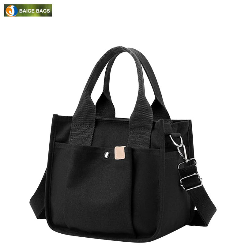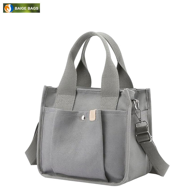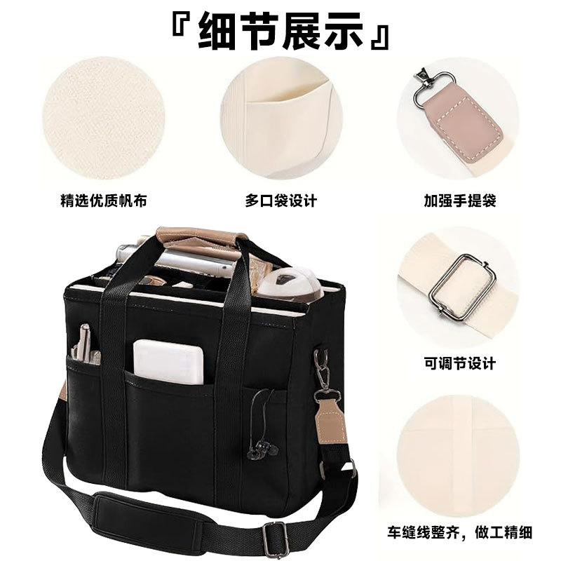 跨境新款帆布袋女大容量手提包便当袋上班饭盒包多隔层口袋单肩包