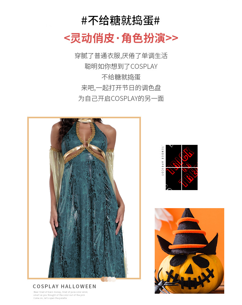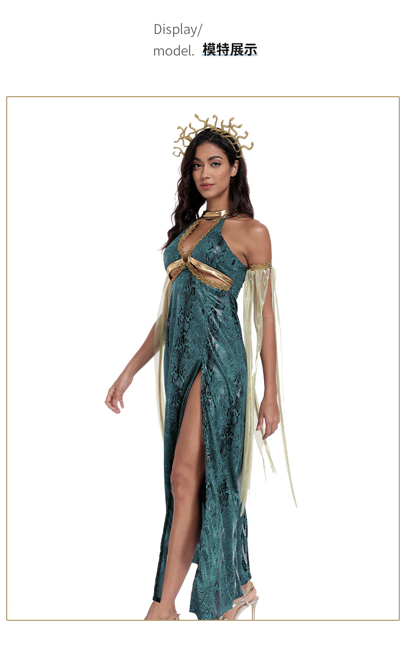 万圣节cos服装蛇女cos服万圣节希腊神话青色戈耳工蛇发女妖美杜莎