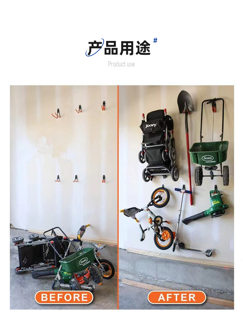 源头工厂批发自行车多功能收纳储物金属墙壁跨境挂钩园艺车库挂钩