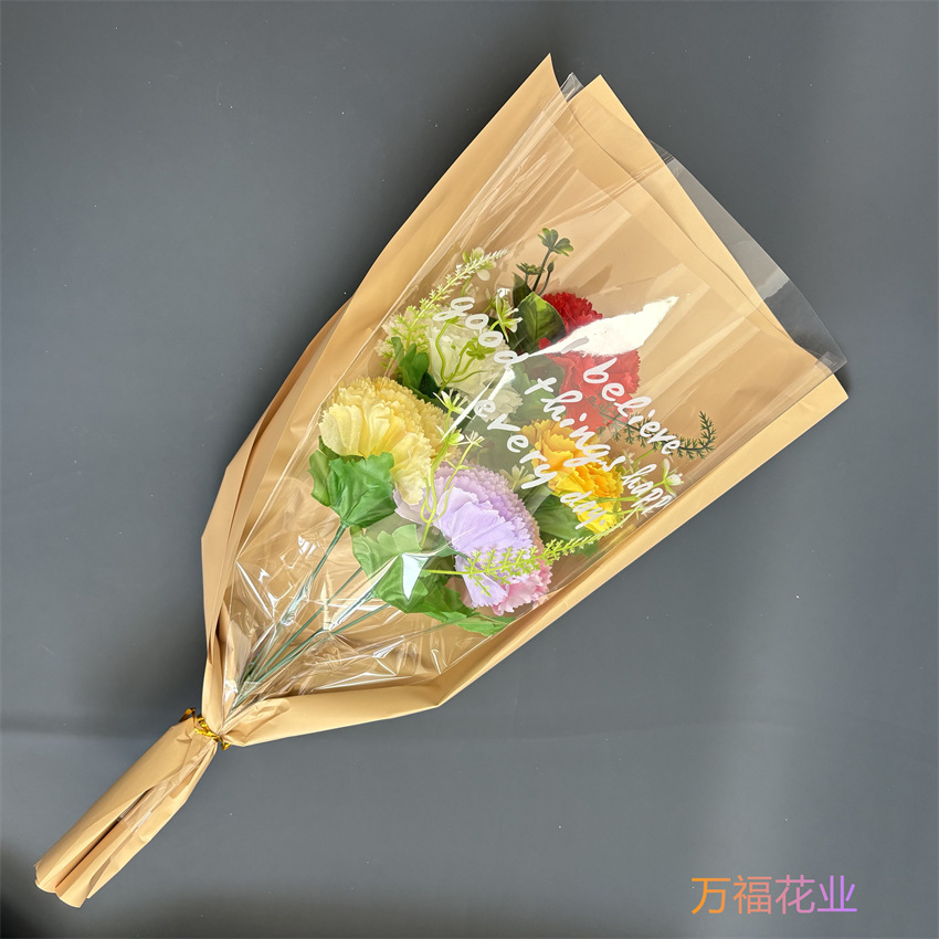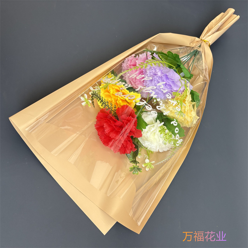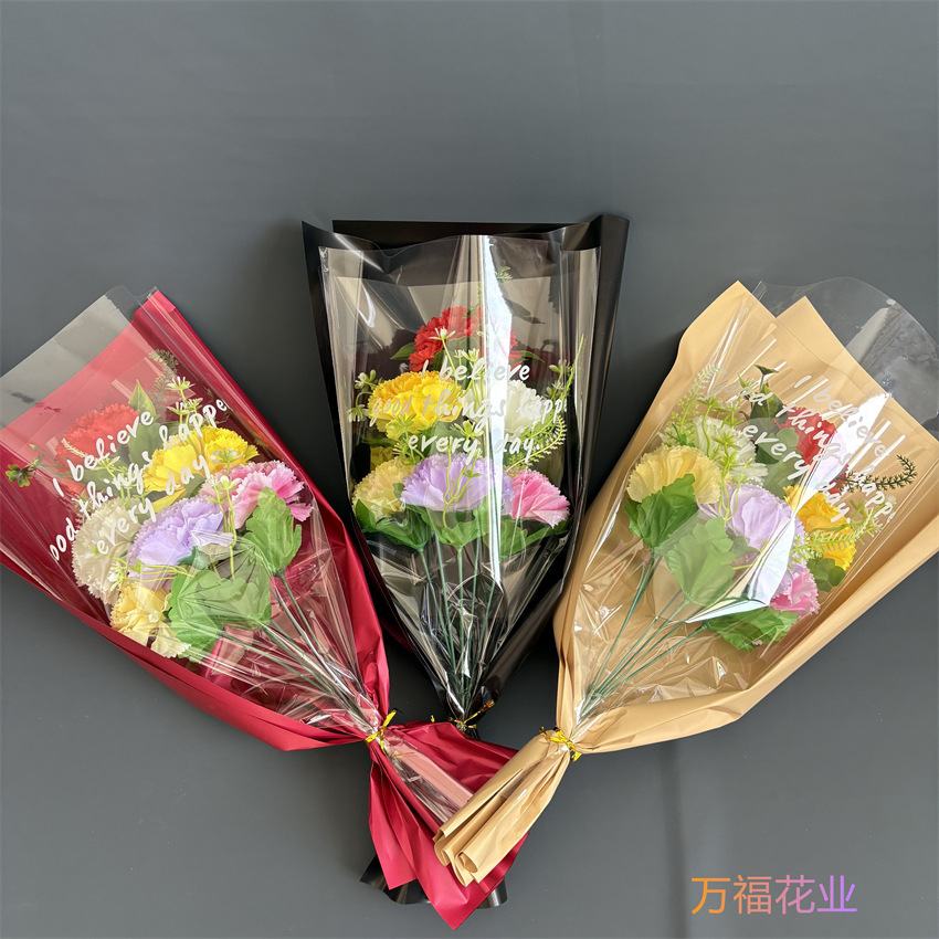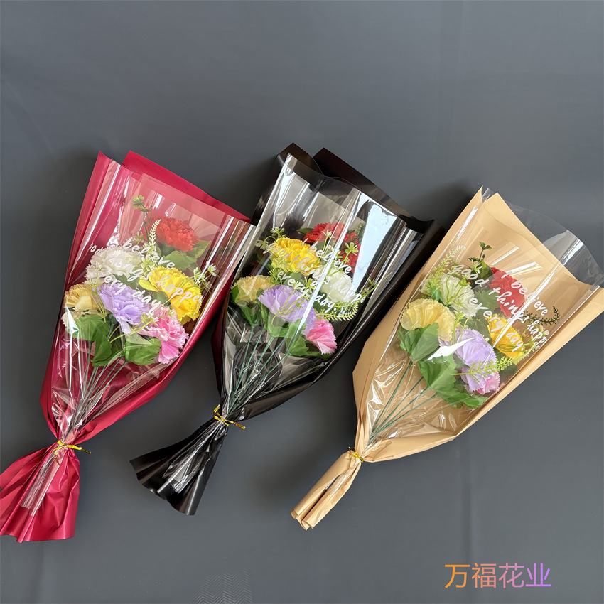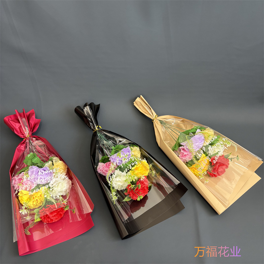 6头新康乃馨手捧花 每朵花多达6层花片组成 花朵更饱满密实 每束配2款共4组水草搭配彩色康乃馨 外加双层仿鲜花包装材料 整体非常新颖 靓丽 美观。