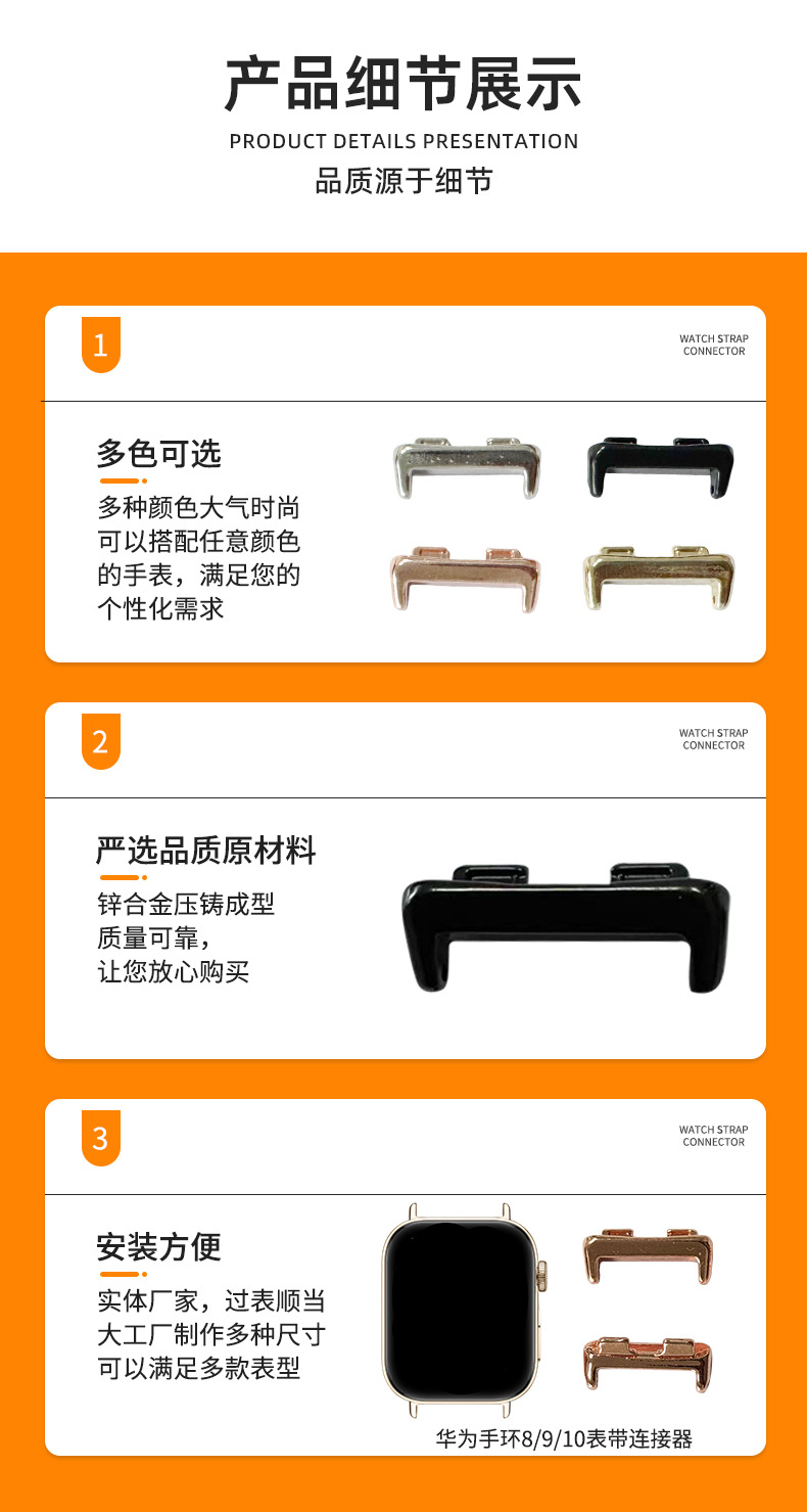 适用华为手环8/9/10表带连接器DIY金属头粒band8中粒手表带钢带,批发价,价格:0.4,厂家直销,适用华为手环8/9/10表带连接器DIY金属头粒band8中粒手表带钢带,免费拿样。