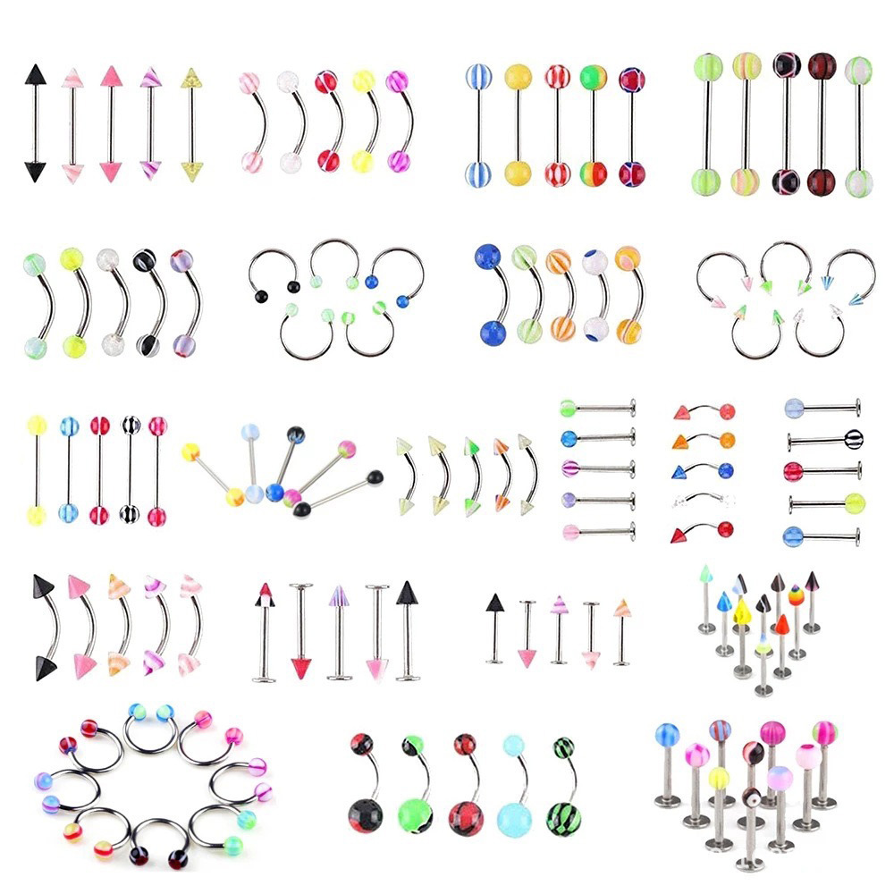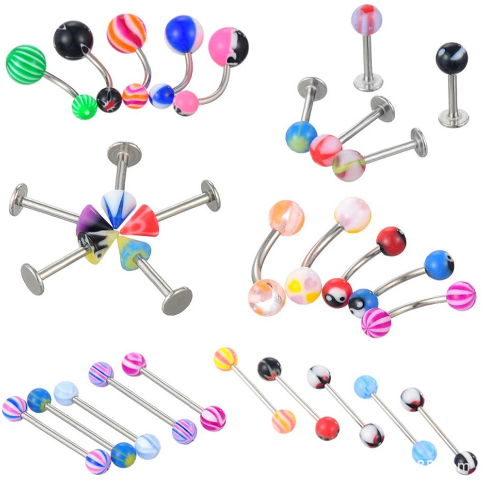 110PCS亚克力多色舌钉眉钉唇钉舌钉肚脐钉组合混款欧美穿刺饰品