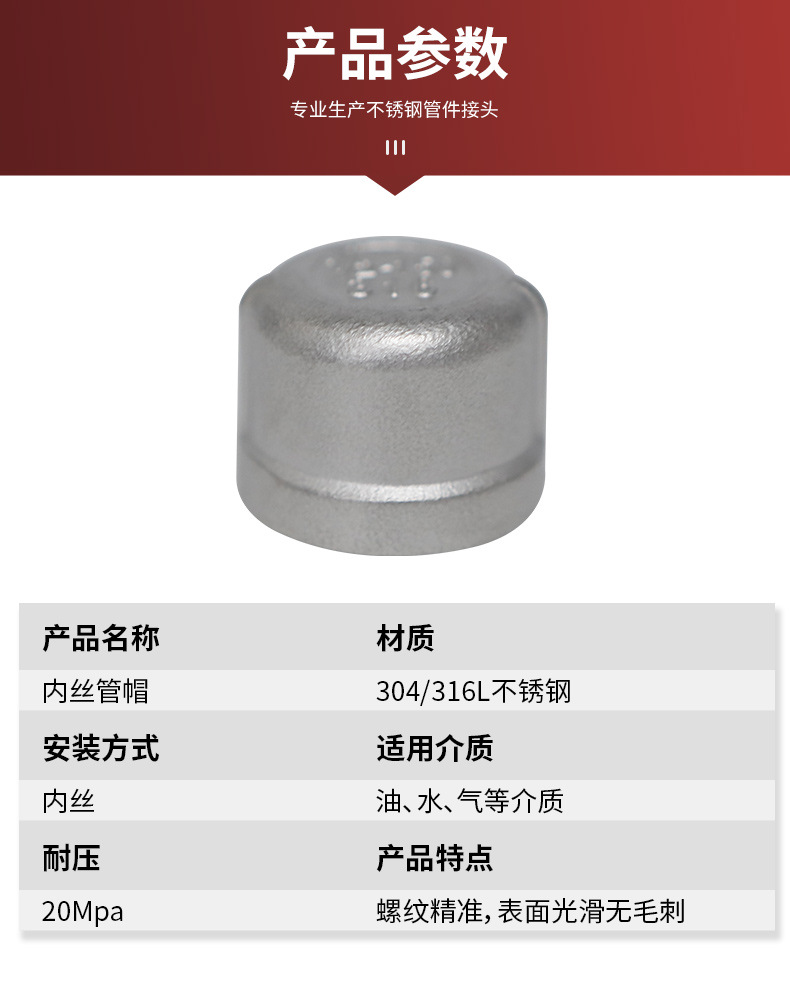 不锈钢内丝圆管帽304/316内丝堵头管堵闷头内牙内螺纹管帽,批发价,价格:888,厂家直销,不锈钢内丝圆管帽304/316内丝堵头管堵闷头内牙内螺纹管帽,免费拿样。