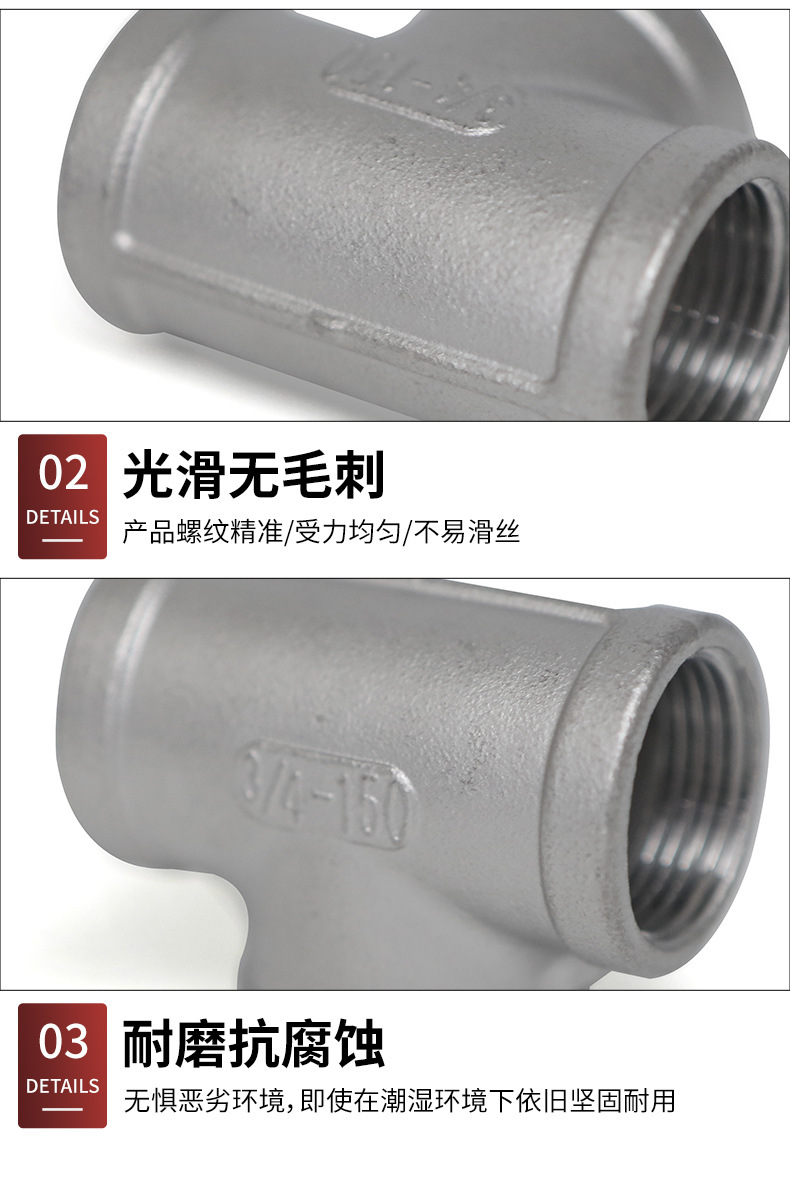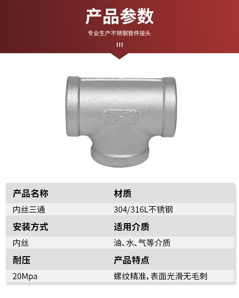 201/304/316不锈钢螺纹内丝三通管件NPT/ZG/BSPT螺纹高压管件