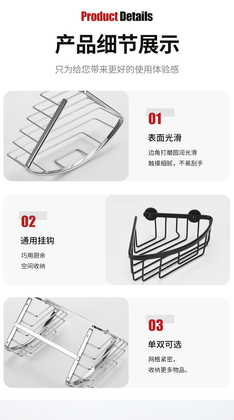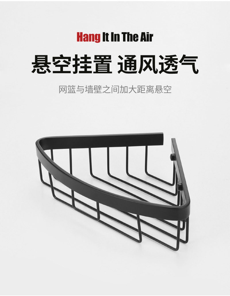 新款浴室转角置物架 宽条双层壁挂式网篮 喷黑铝合金转角三角置物