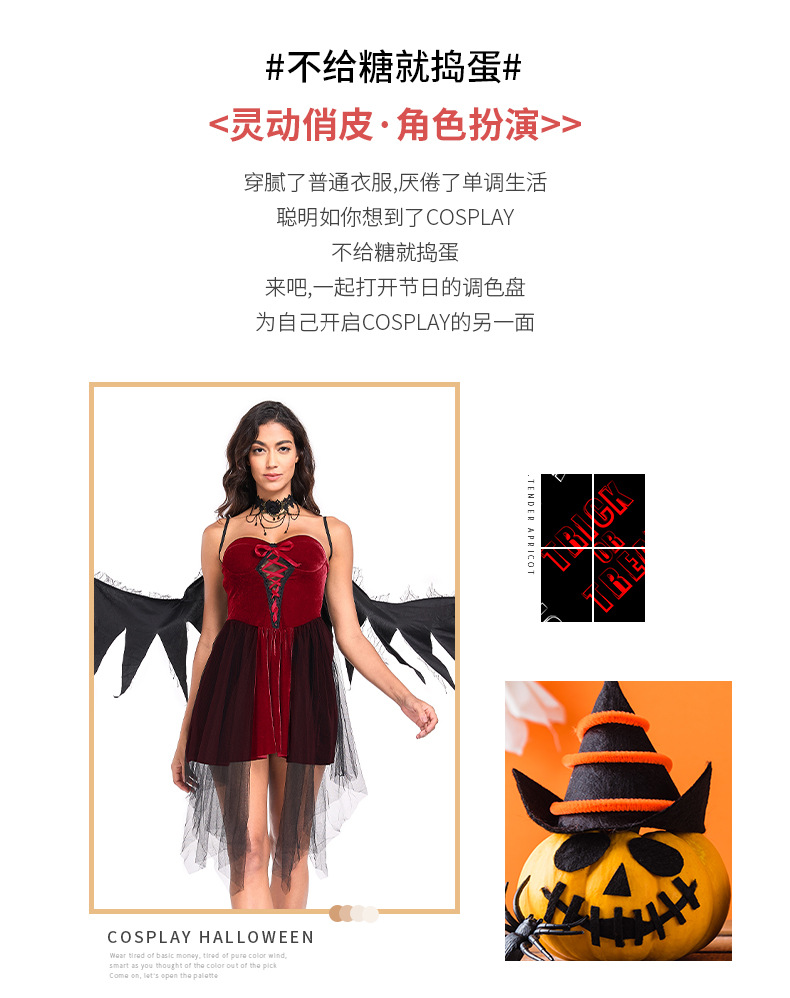 万圣节服装天使cos服暗黑天使红色恶魔连衣裙cos服装角色表演服女