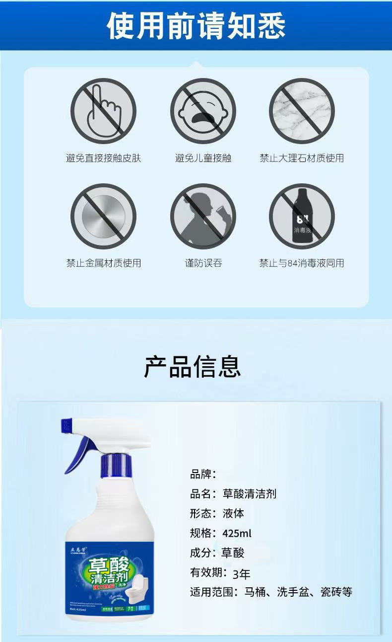 草酸清洁剂浓缩溶液高浓度家用卫生间瓷砖除垢多功能清洁去污防护