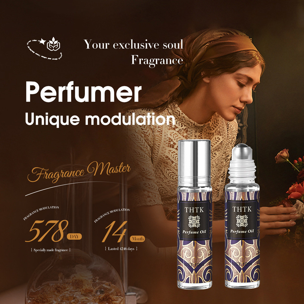 跨境英文版THTK中东浪漫滚珠香水精油自然清新淡香约会留香持久