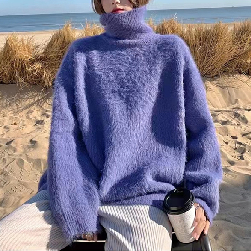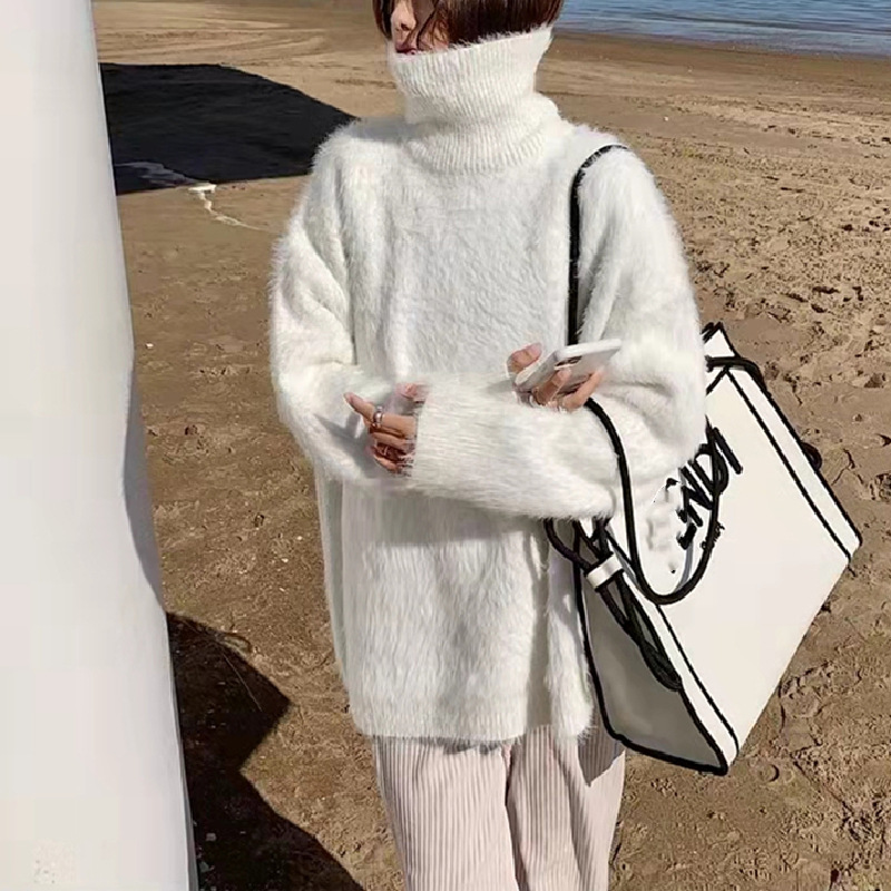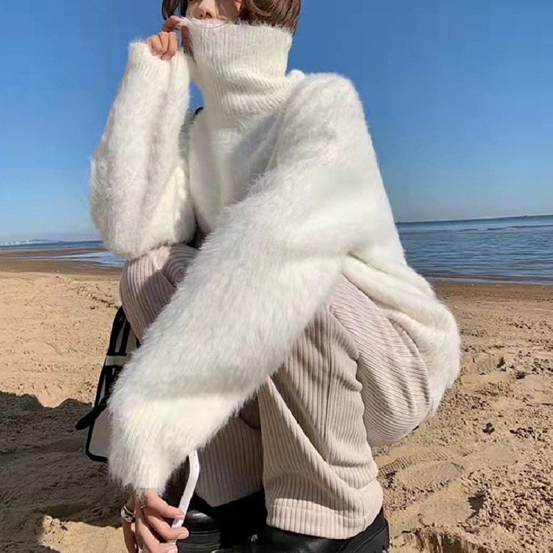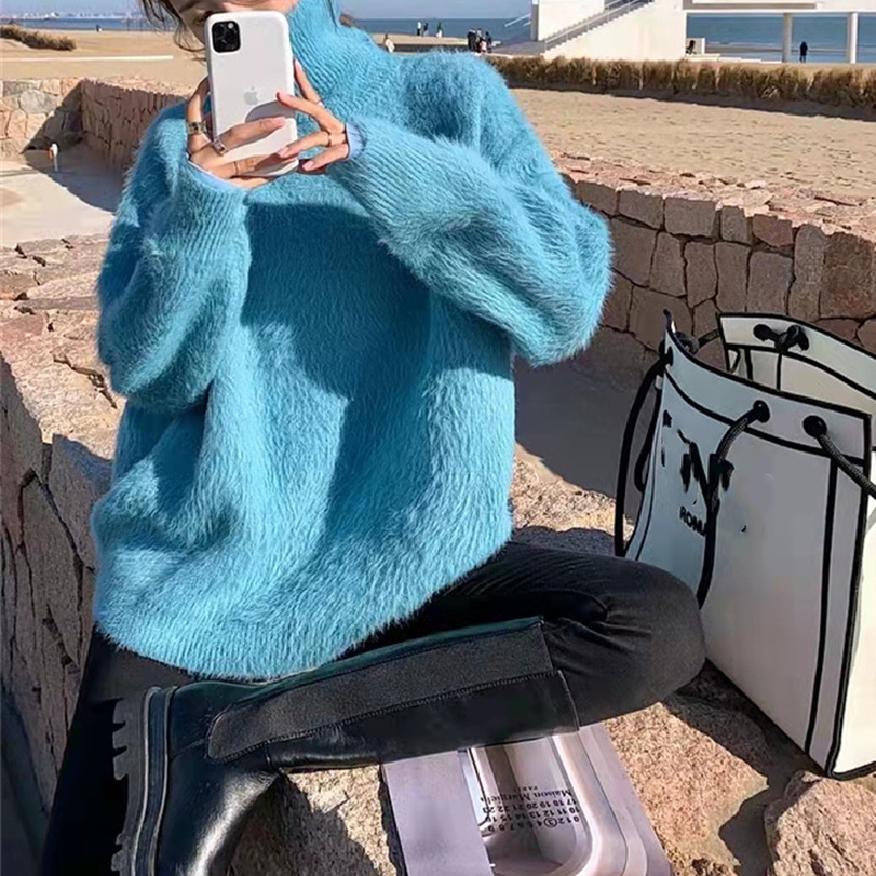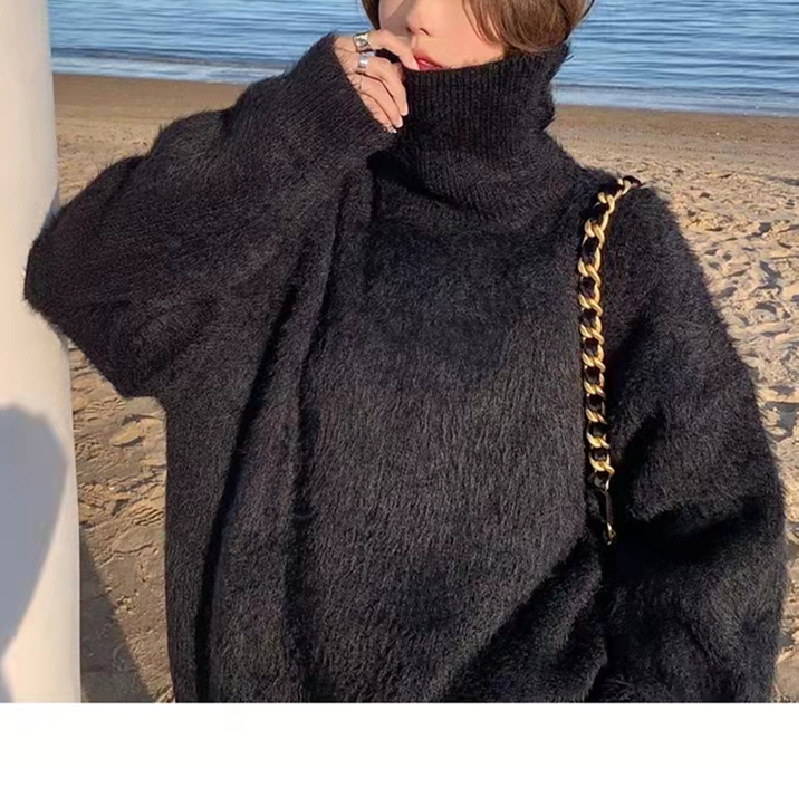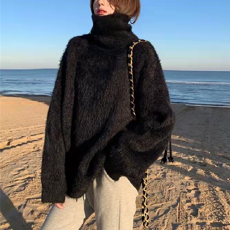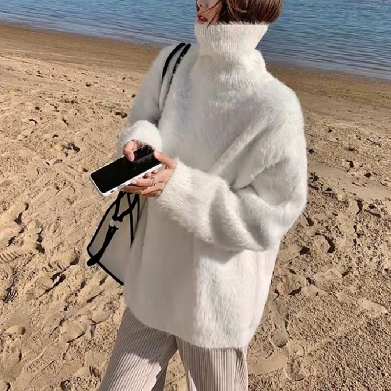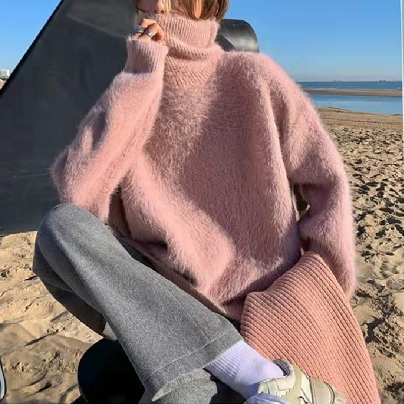 韩系纯色高级感仿貂绒高领毛衣秋冬季新款慵懒风宽松针织套头衫女