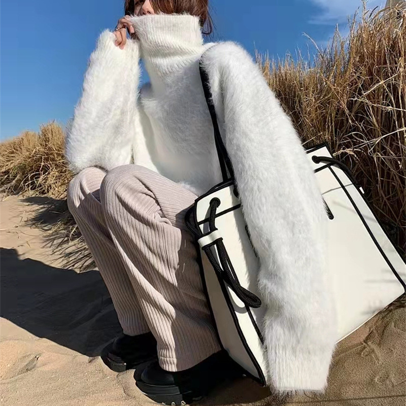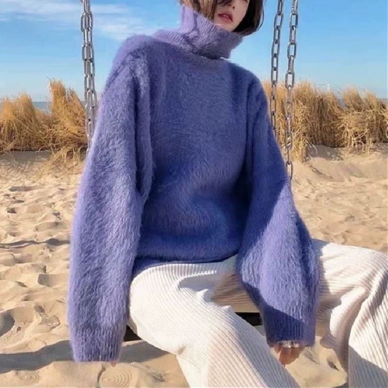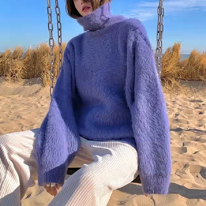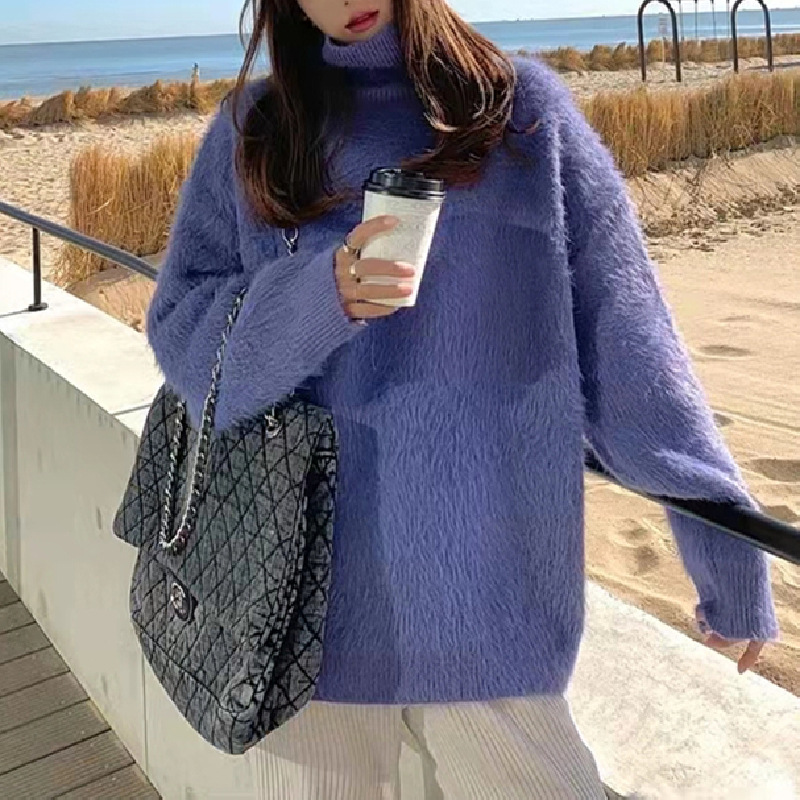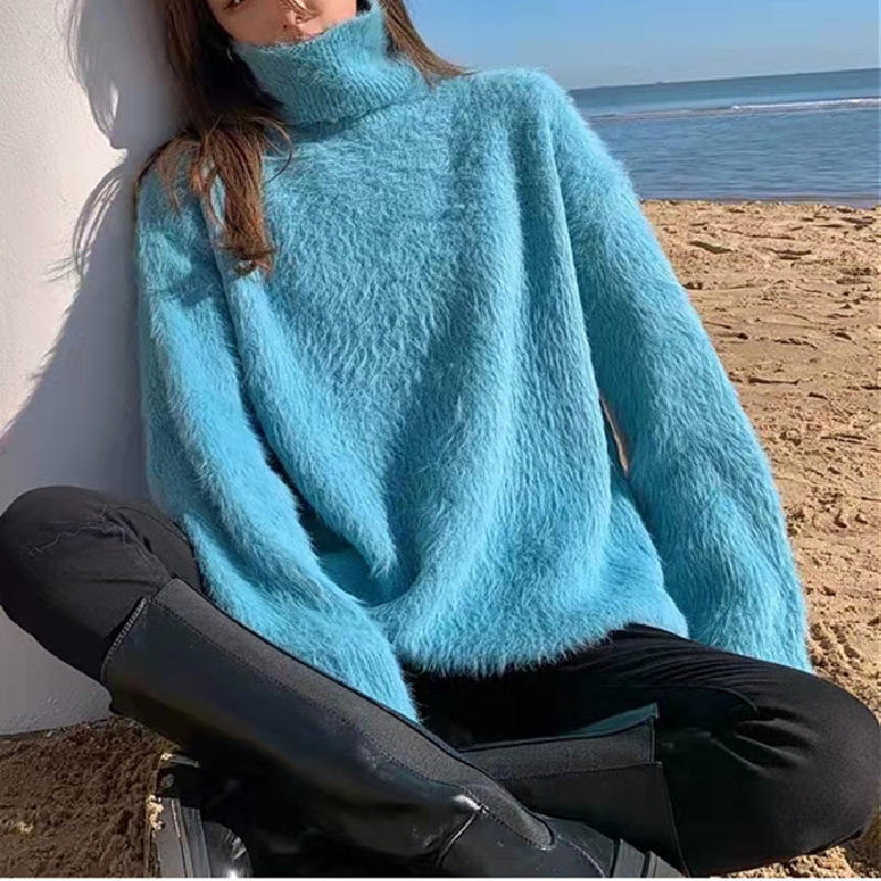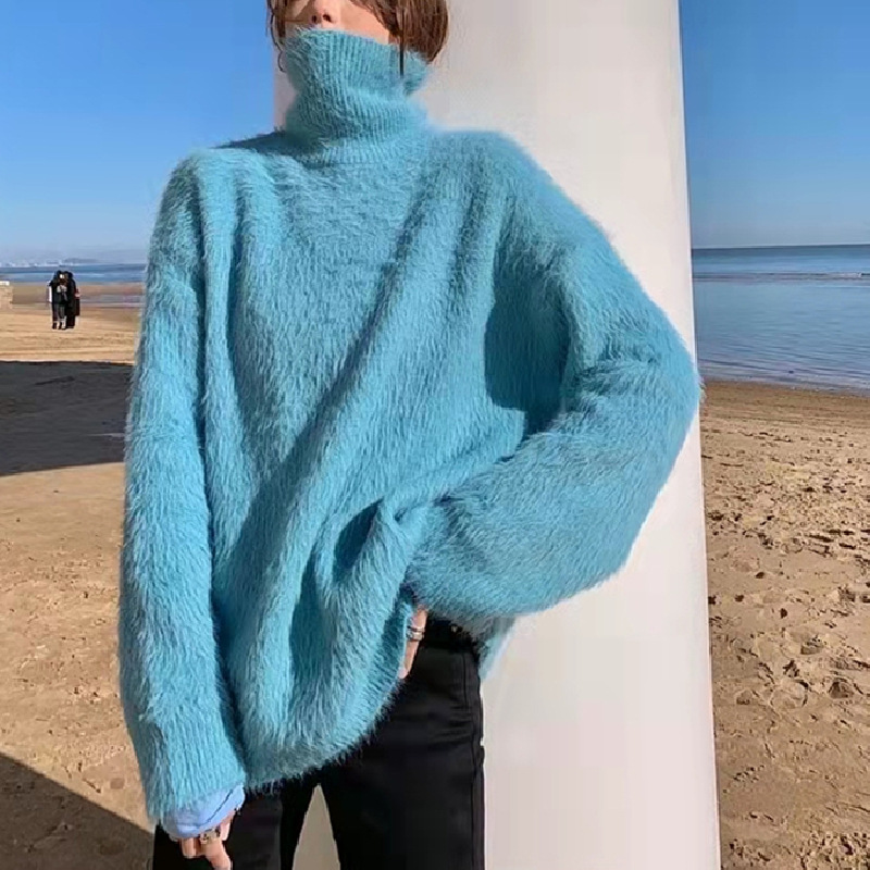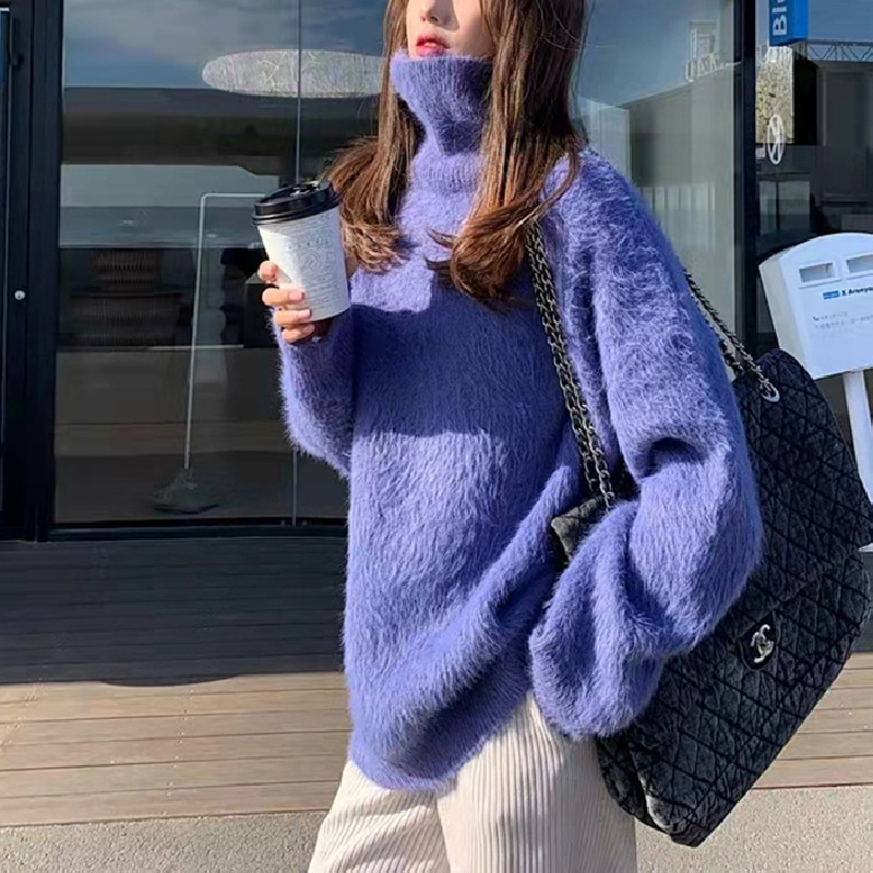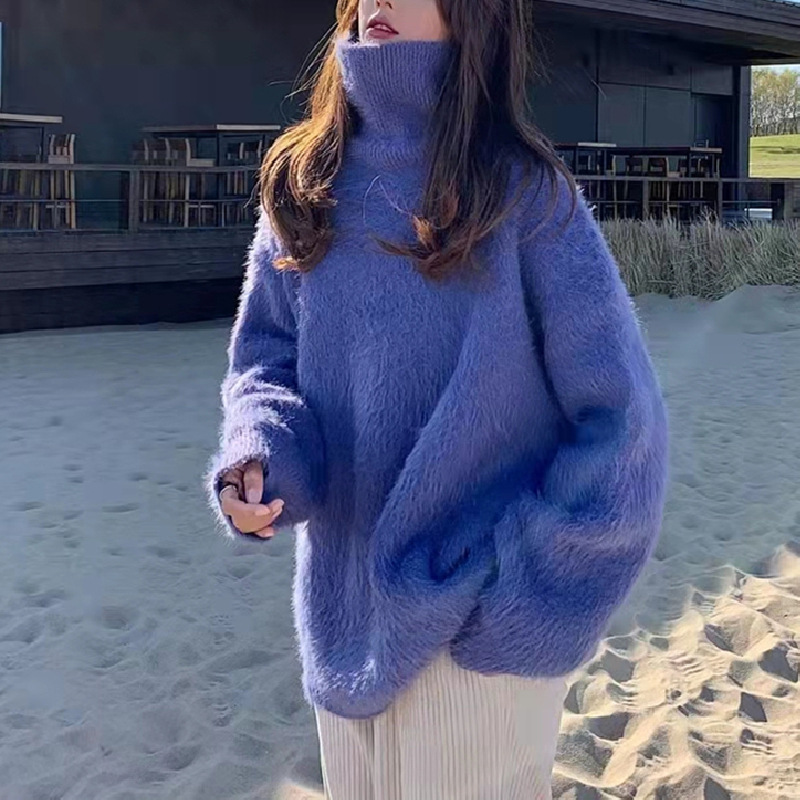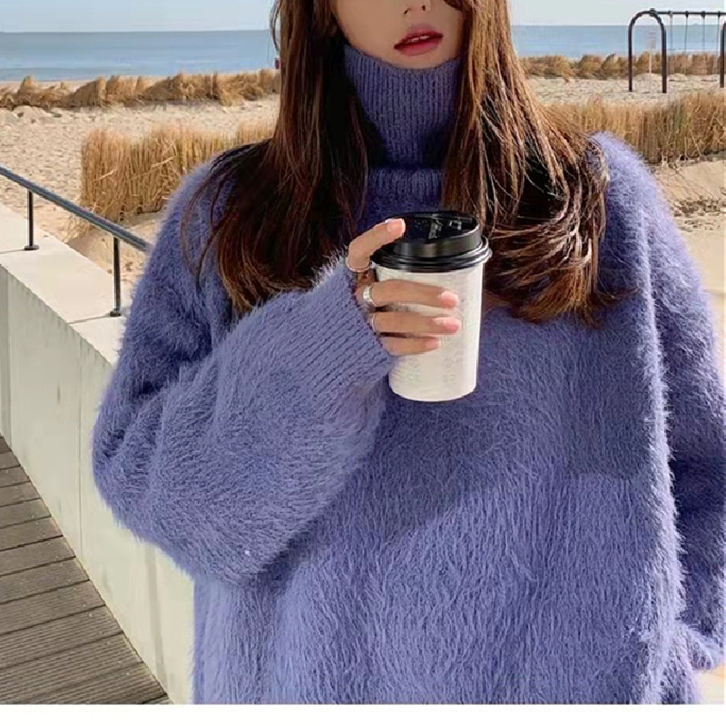 韩系纯色高级感仿貂绒高领毛衣秋冬季新款慵懒风宽松针织套头衫女,批发价,价格:55,厂家直销,韩系纯色高级感仿貂绒高领毛衣秋冬季新款慵懒风宽松针织套头衫女,免费拿样。
