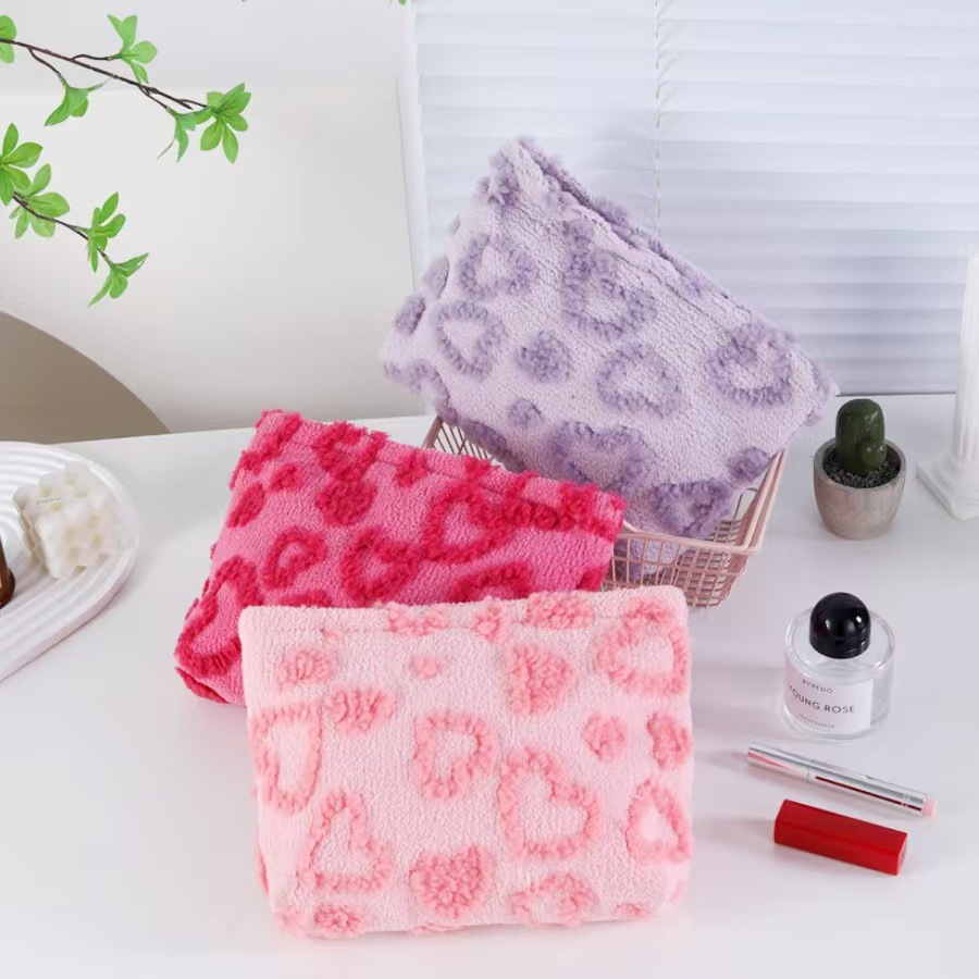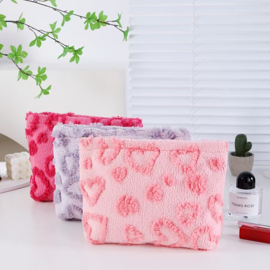 新款简约可爱心型手拿收纳包便携物品零钱口红化妆品化妆包化妆刷