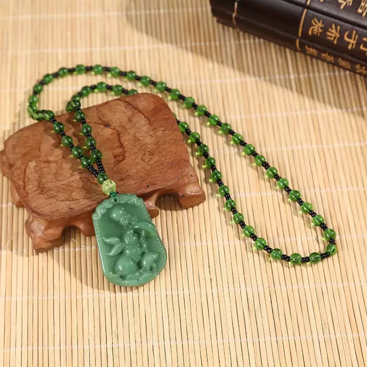 新款浅绿色十二生肖本命年平安扣吊坠男女款毛衣链礼物批发