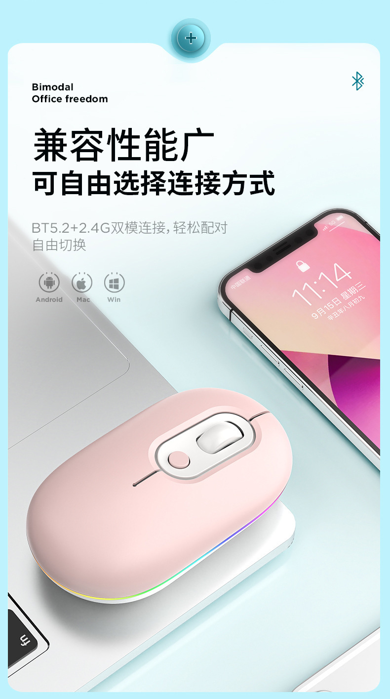 跨境亚马逊充电蓝牙静音双模办公笔记本电脑平板通用发光无线鼠标