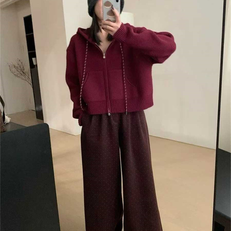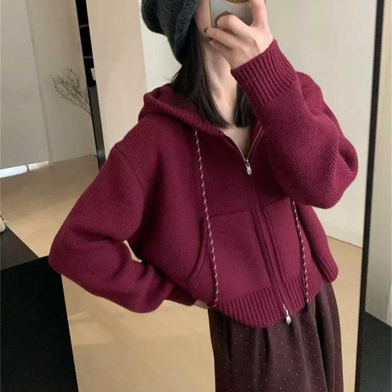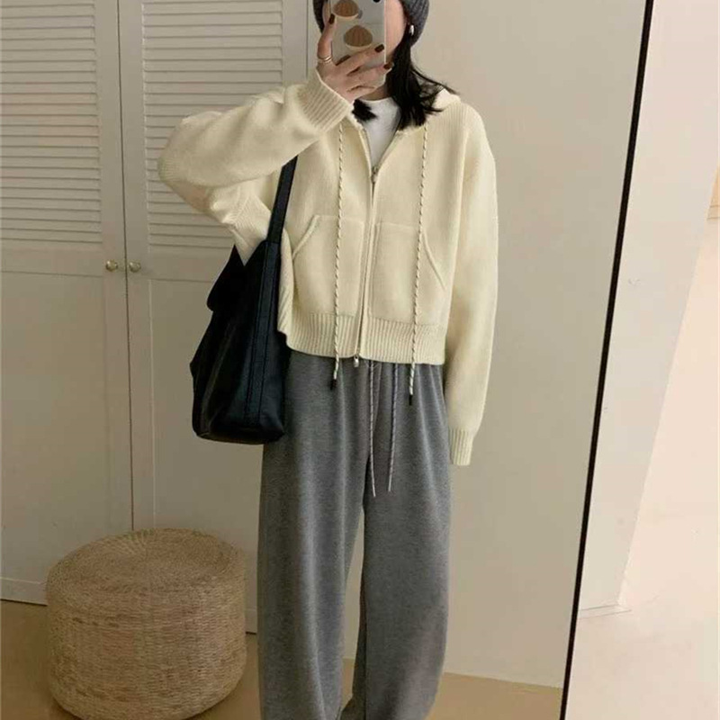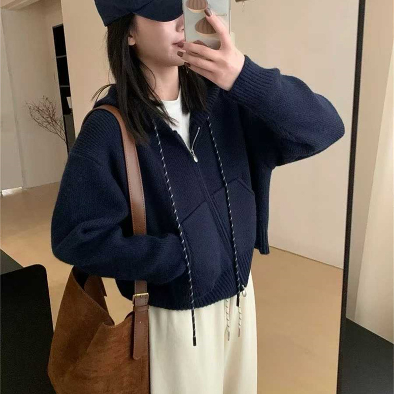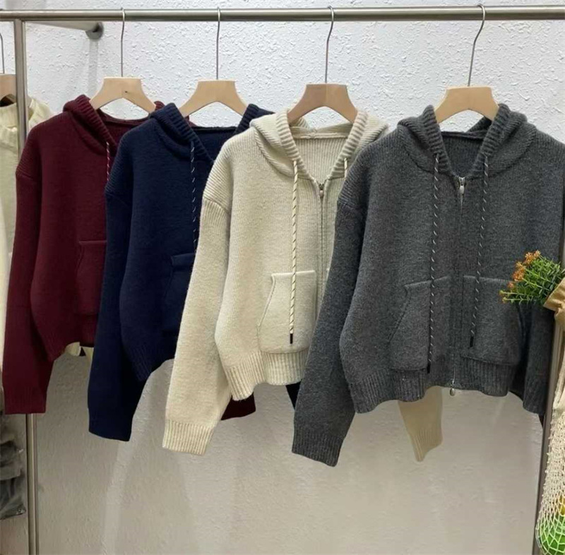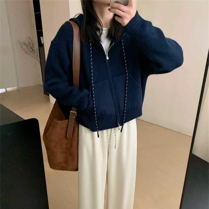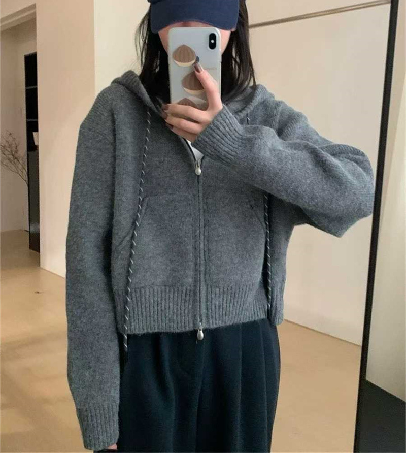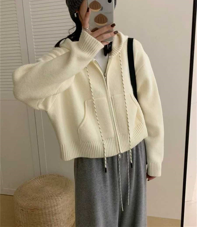 韩系穿搭休闲设计感抽绳拉链连帽毛衣开衫女秋冬加厚短款针织外套,批发价,价格:59,厂家直销,韩系穿搭休闲设计感抽绳拉链连帽毛衣开衫女秋冬加厚短款针织外套,免费拿样。