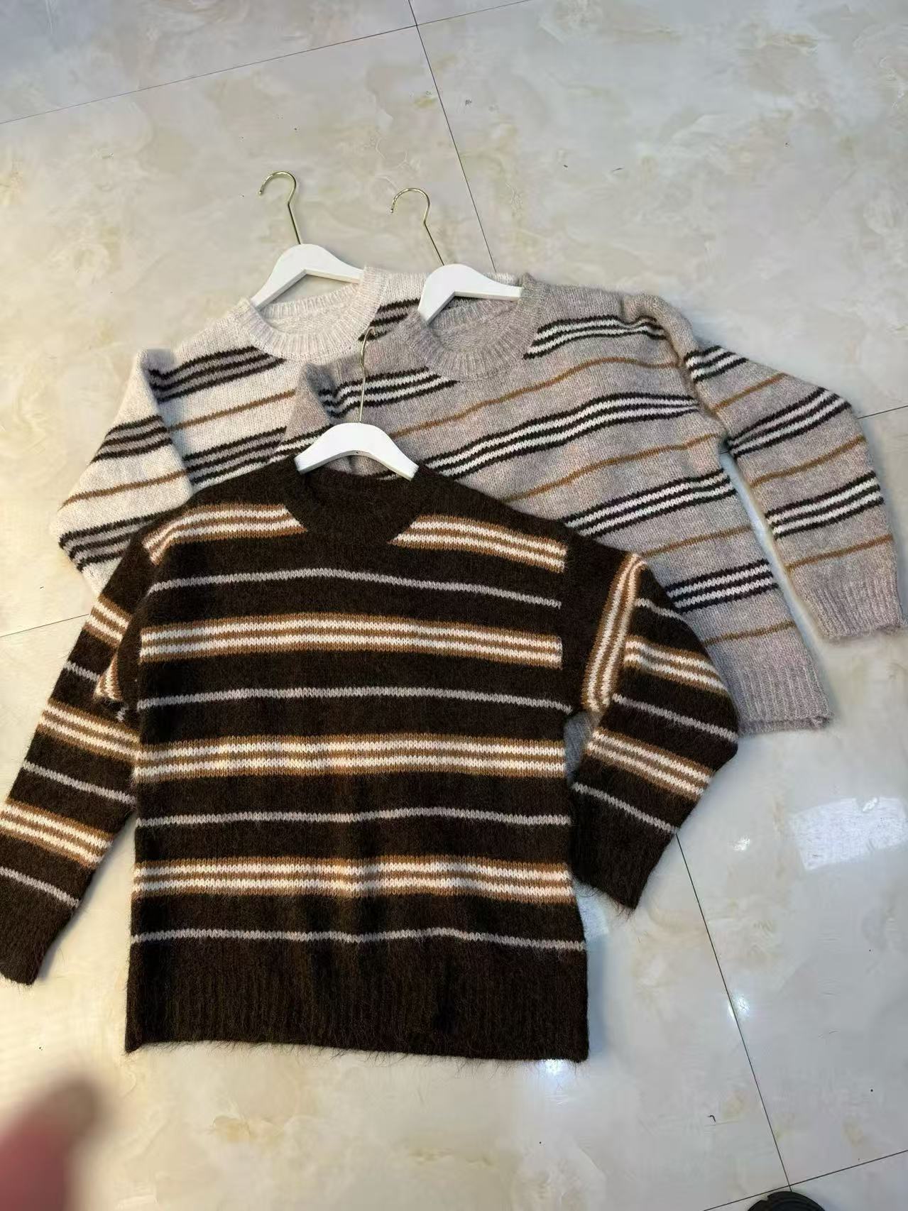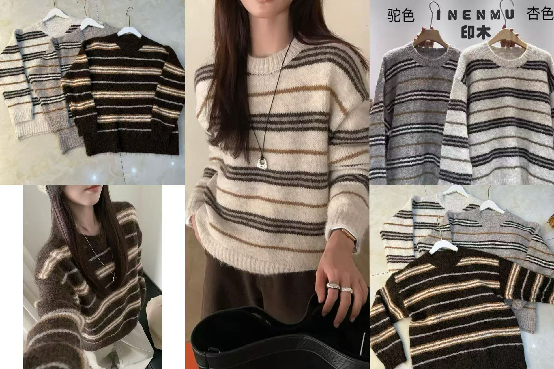 2025秋冬宽松软糯毛绒感上衣THINK十三行韩系经典撞色条纹毛衣女,批发价,价格:49,厂家直销,2025秋冬宽松软糯毛绒感上衣THINK十三行韩系经典撞色条纹毛衣女,免费拿样。