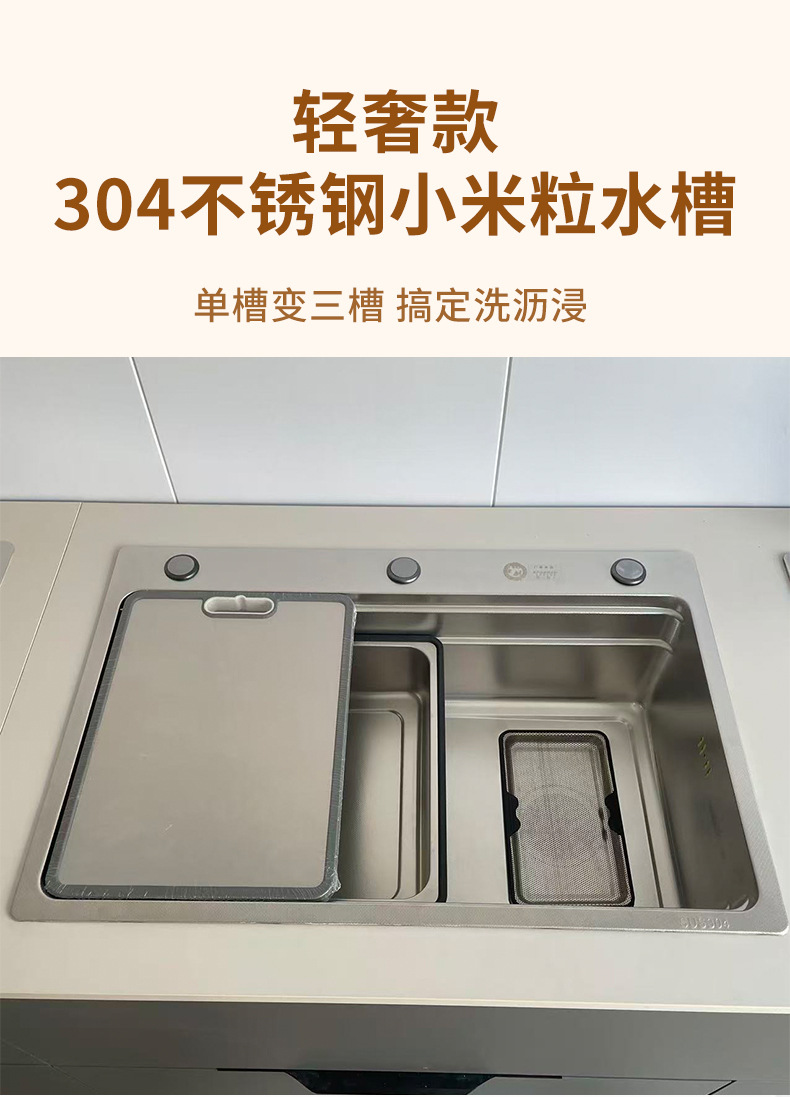 集渣款家用厨房大单槽水槽小米粒洗菜盆304不锈钢厨房洗碗池水池