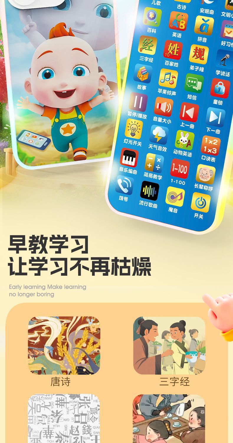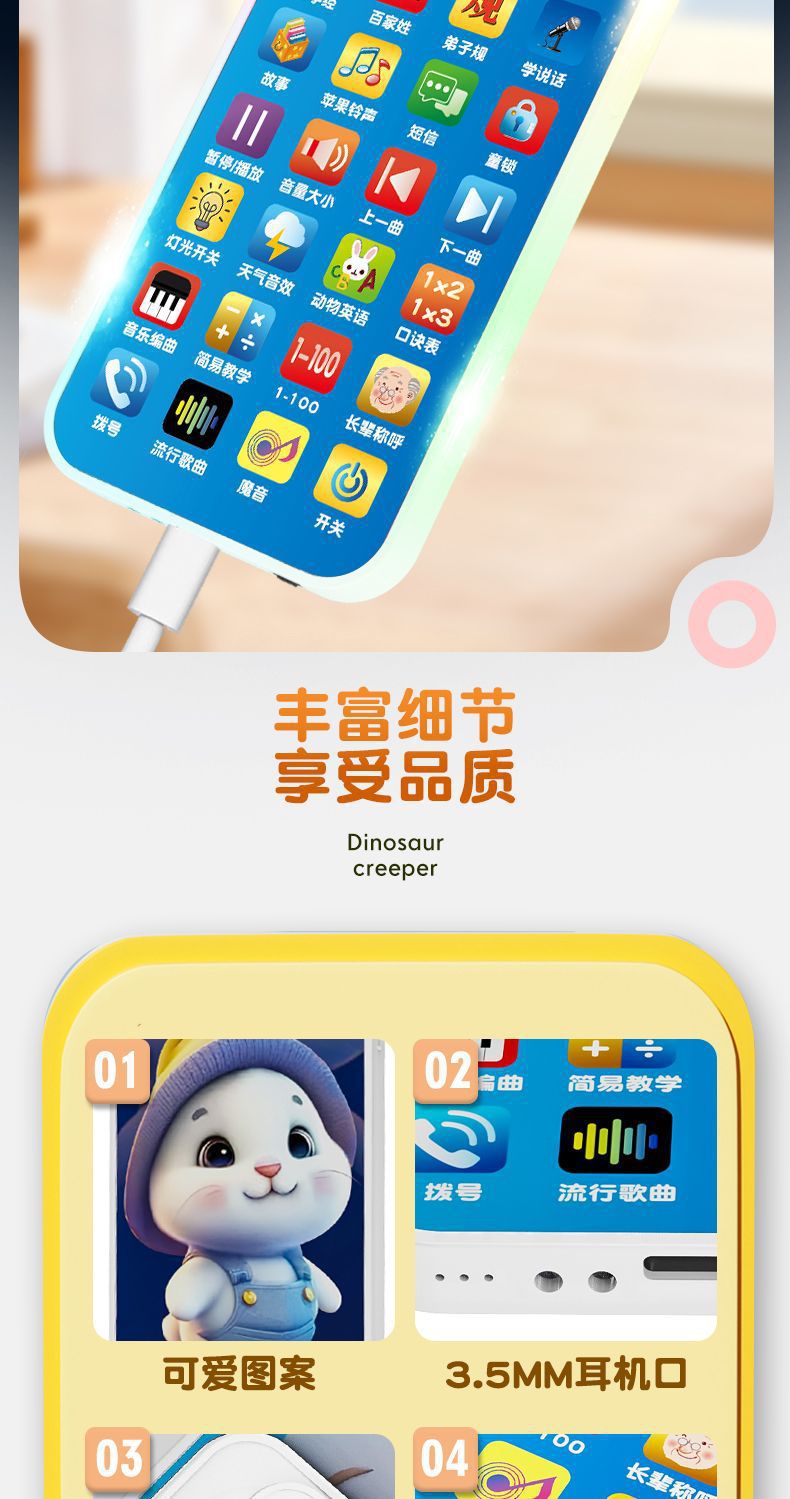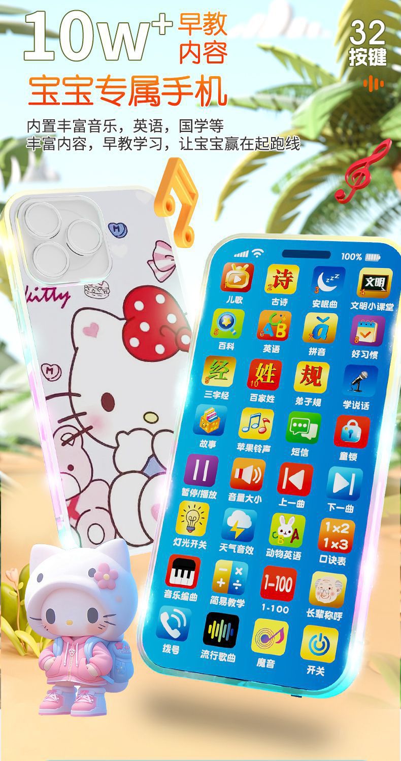 【厂家直供】Hello Kitty可充电儿童仿真触屏手机益智早教宝宝音