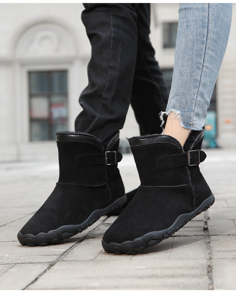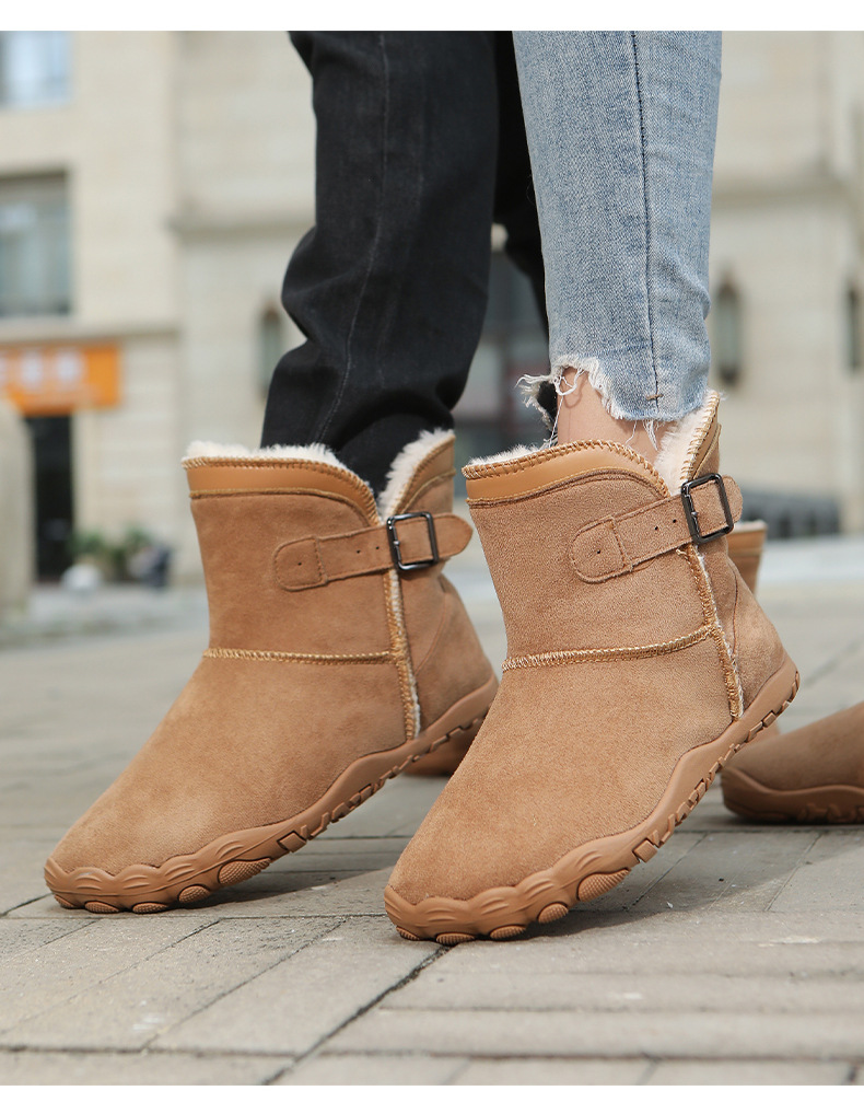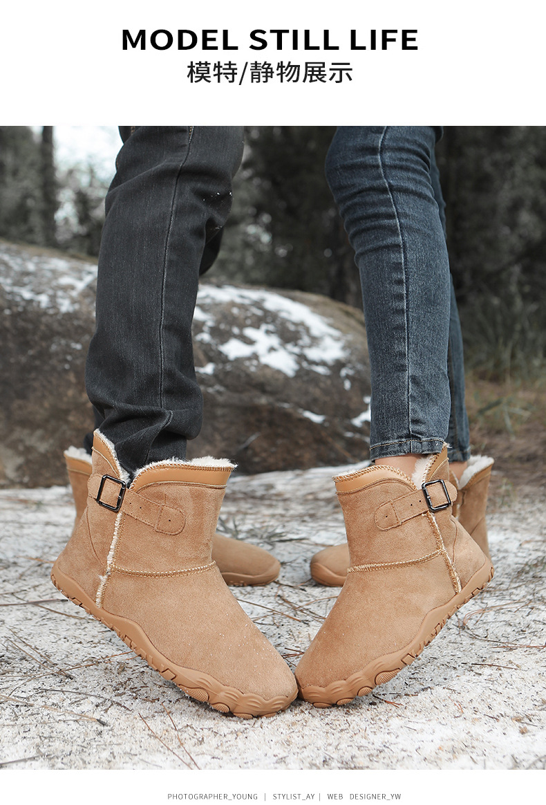 跨境冬季新款棉鞋男女加绒保暖耐磨雪地靴工厂直销加厚牛皮绒棉靴
