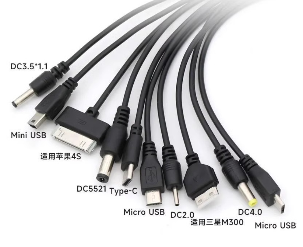 USB一拖十手机万能充电线/器 多功能圆头10合1充电线 typec电源线