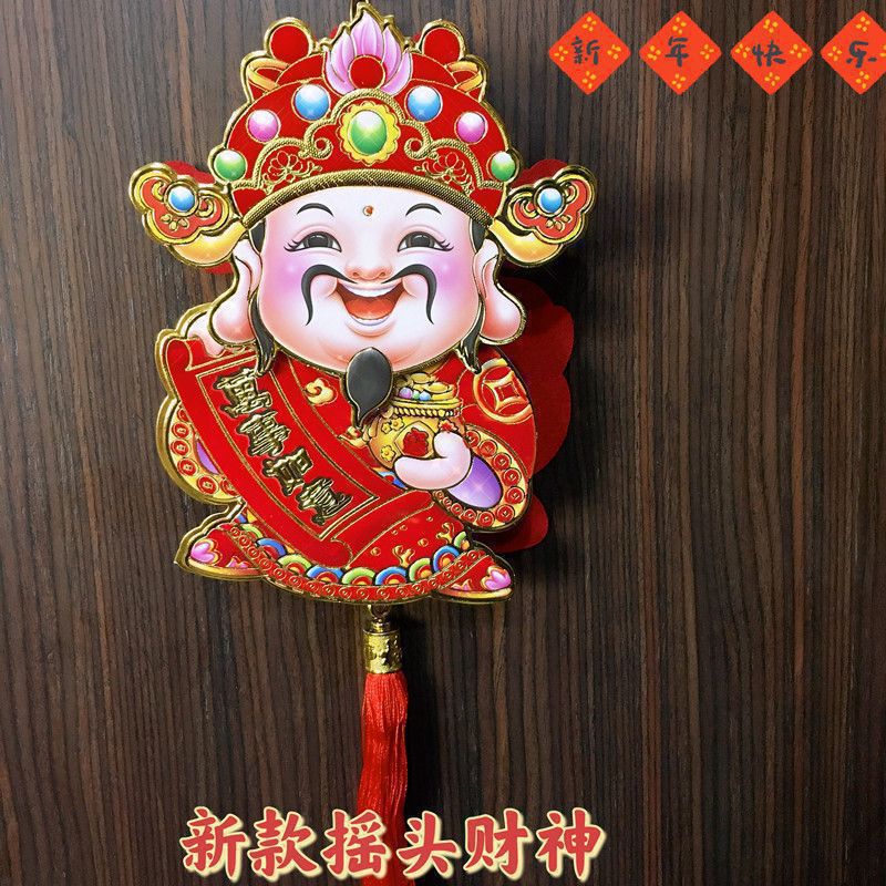 2026电动摇头财神爷挂件新年立体挂饰迷你小财神春节客厅布置招财