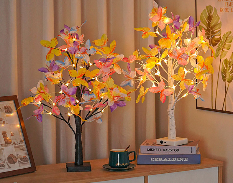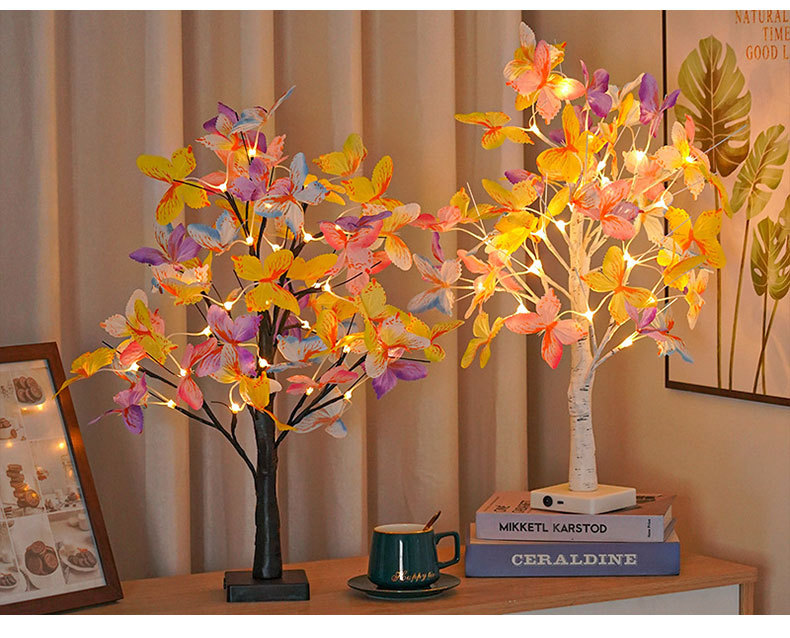 工厂供应跨境新款LED白桦树彩色蝴蝶树灯圣诞节造型灯装饰摆件灯