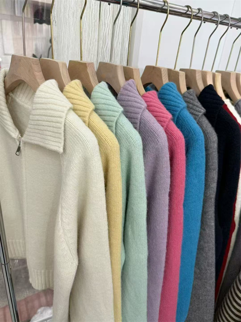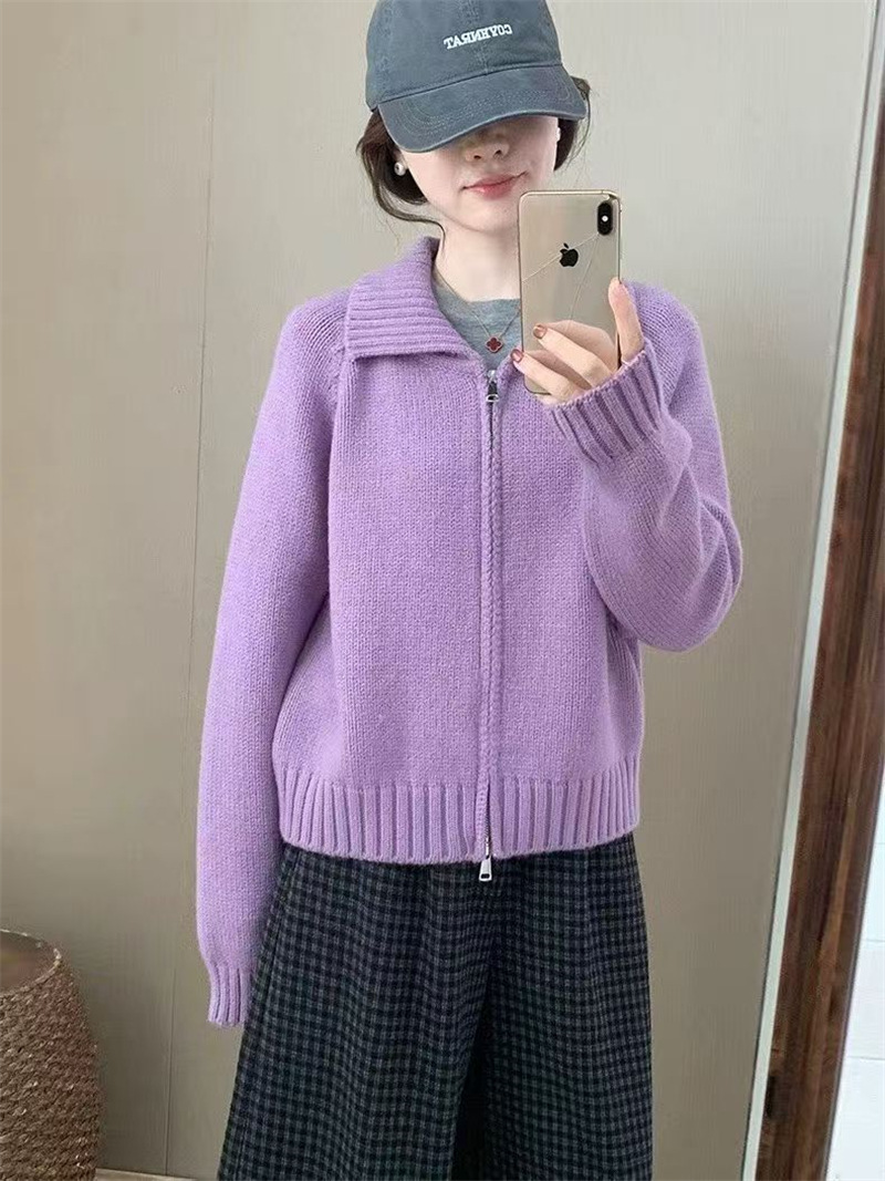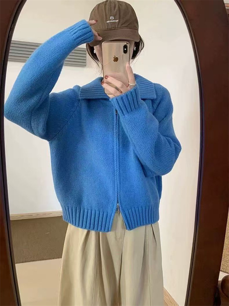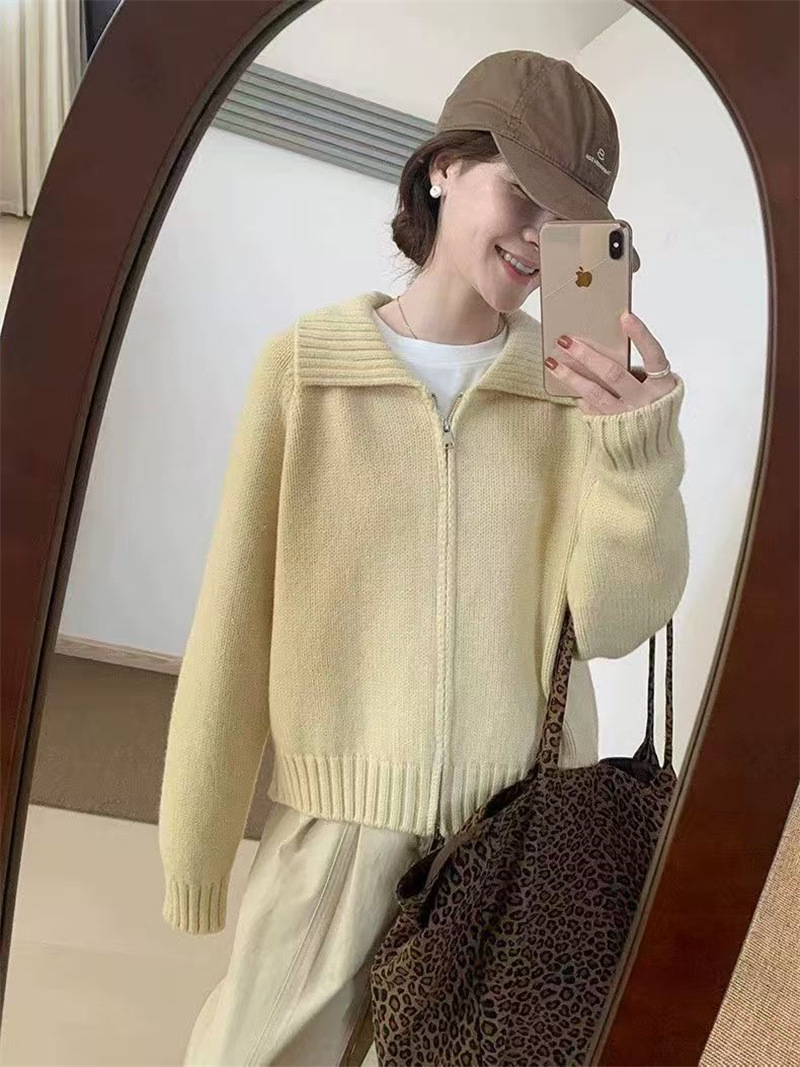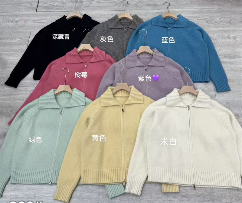 韩系慵懒风软糯翻领拉链毛衣外套女秋冬新款简约纯色长袖针织开衫,批发价,价格:55,厂家直销,韩系慵懒风软糯翻领拉链毛衣外套女秋冬新款简约纯色长袖针织开衫,免费拿样。